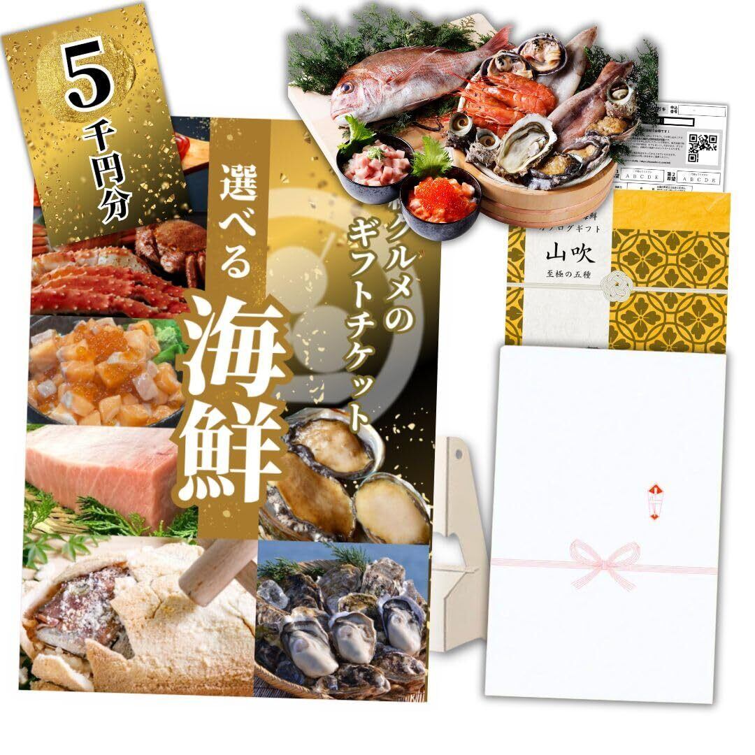 【A4パネル付き・イベント景品】高級海鮮5000円分[山吹コース]チケット(5つのコースから選べるグルメカタログギフト式)【用途:忘年会, 新年会, ゴルフコンペ, 結婚式, 披露宴, 二次会, ビンゴ大会 等】