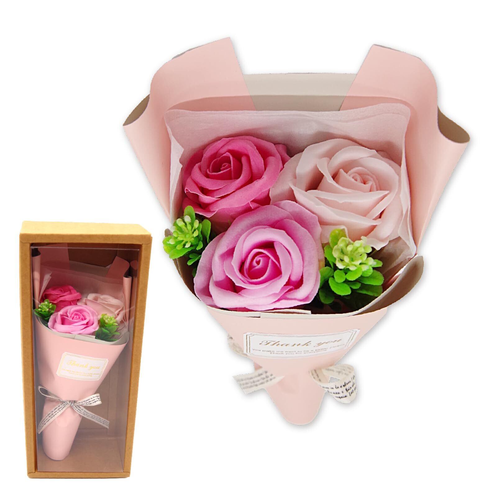 BIO フレグランスソープフラワー フェアリー3輪ローズBOX ギフトボックス お祝い 記念日 誕生日 発表会 ブライダル パーティー 送別会 プレゼント 七五三 いい夫婦の日 お歳暮 クリスマス (ピンク)
