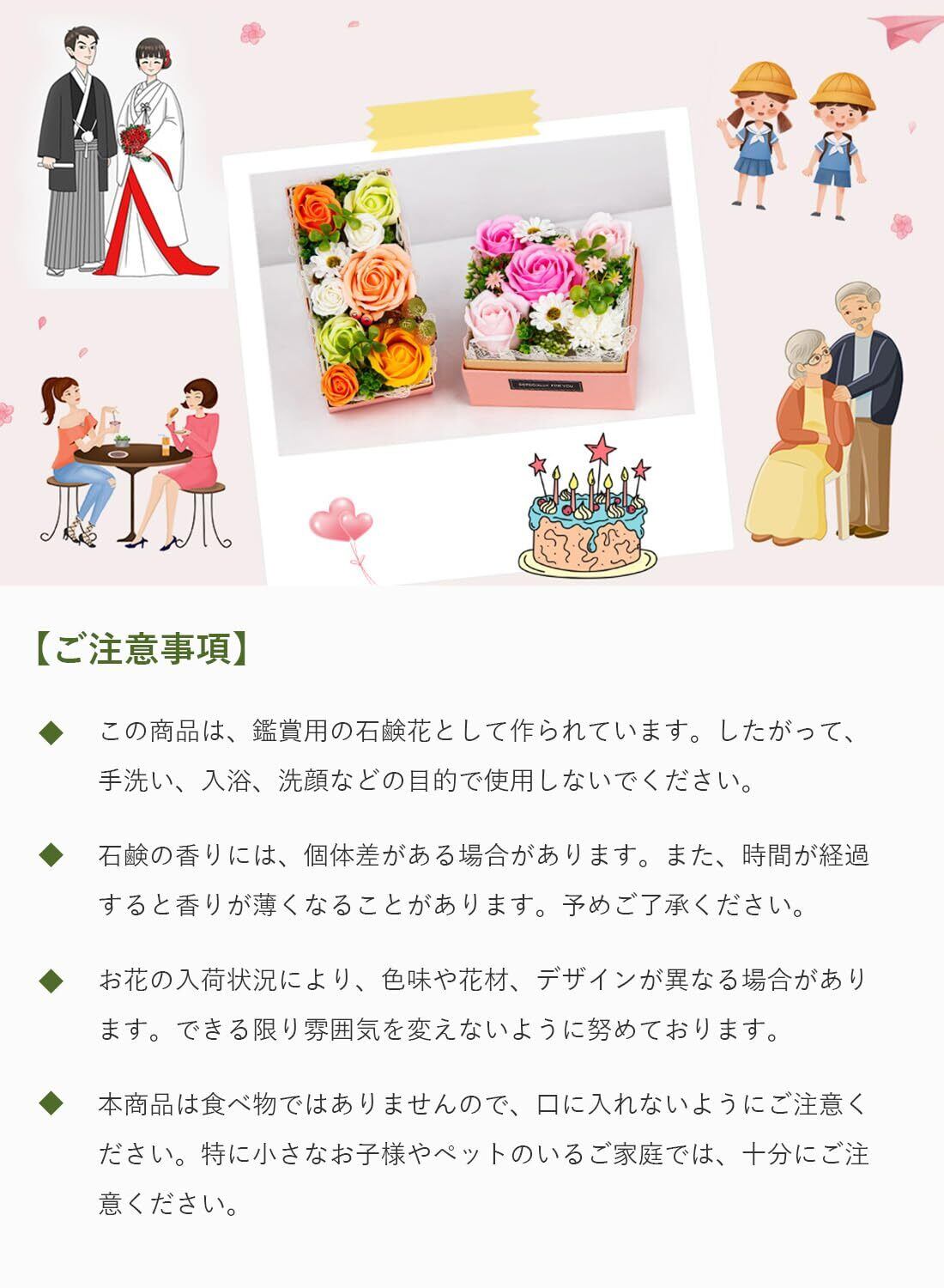 **ソープフラワーは枯れることがなく、その美しさを長く楽しむことができます!** 香りも楽しめるため、贈られた方の心に長く残ることでしょう。