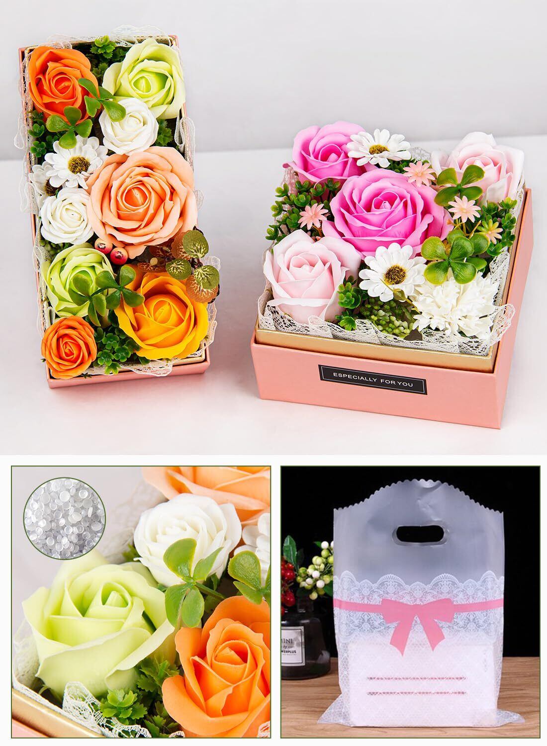BBICE ソープフラワー ギフト 人気 誕生日プレゼント 手提げ付き 枯れない お花 ギフトクリアボックス メッセージカード付き 女性 母の日 父の日 敬老の日 バレンタインデー クリスマス 新年 結婚記念日 彼女 送別会 退職感謝 お礼 昇進 転居 お見舞い