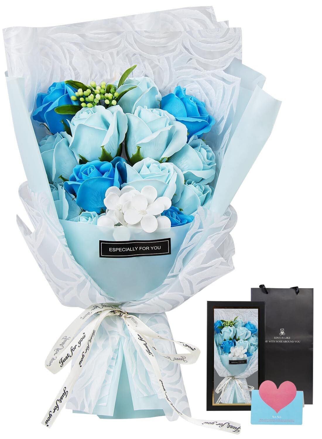 \【◆ソープフラワー 花束 男性向けギフト 誕生日 昇進祝い 父の日 プレゼント 上司 彼氏 おしゃれな造花 青 枯れない花 ブルーローズ】/