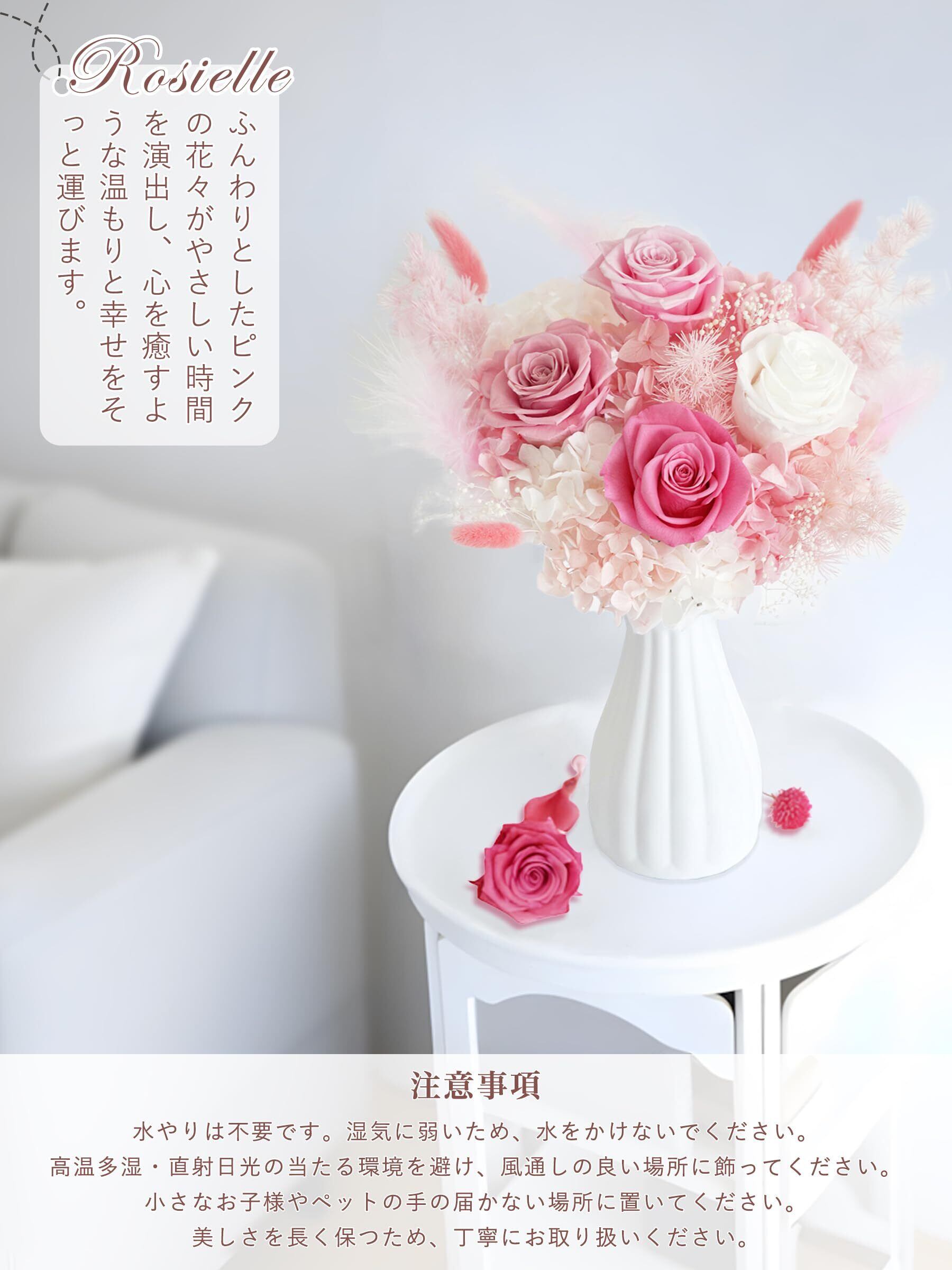 【花粉なし・水やり不要・お手入れ簡単】花粉が出ないためアレルギーの心配がなく、ペットがいるご家庭でも安心して飾れます。水やり不要で手間もかかりません。※プリザーブドフラワーは非常に繊細なため、花びらに強い力を加えないようご注意ください。また、湿気の多い場所や直射日光、高温多湿を避けて保管することで、より美しい状態を長くお楽しみいただけます。