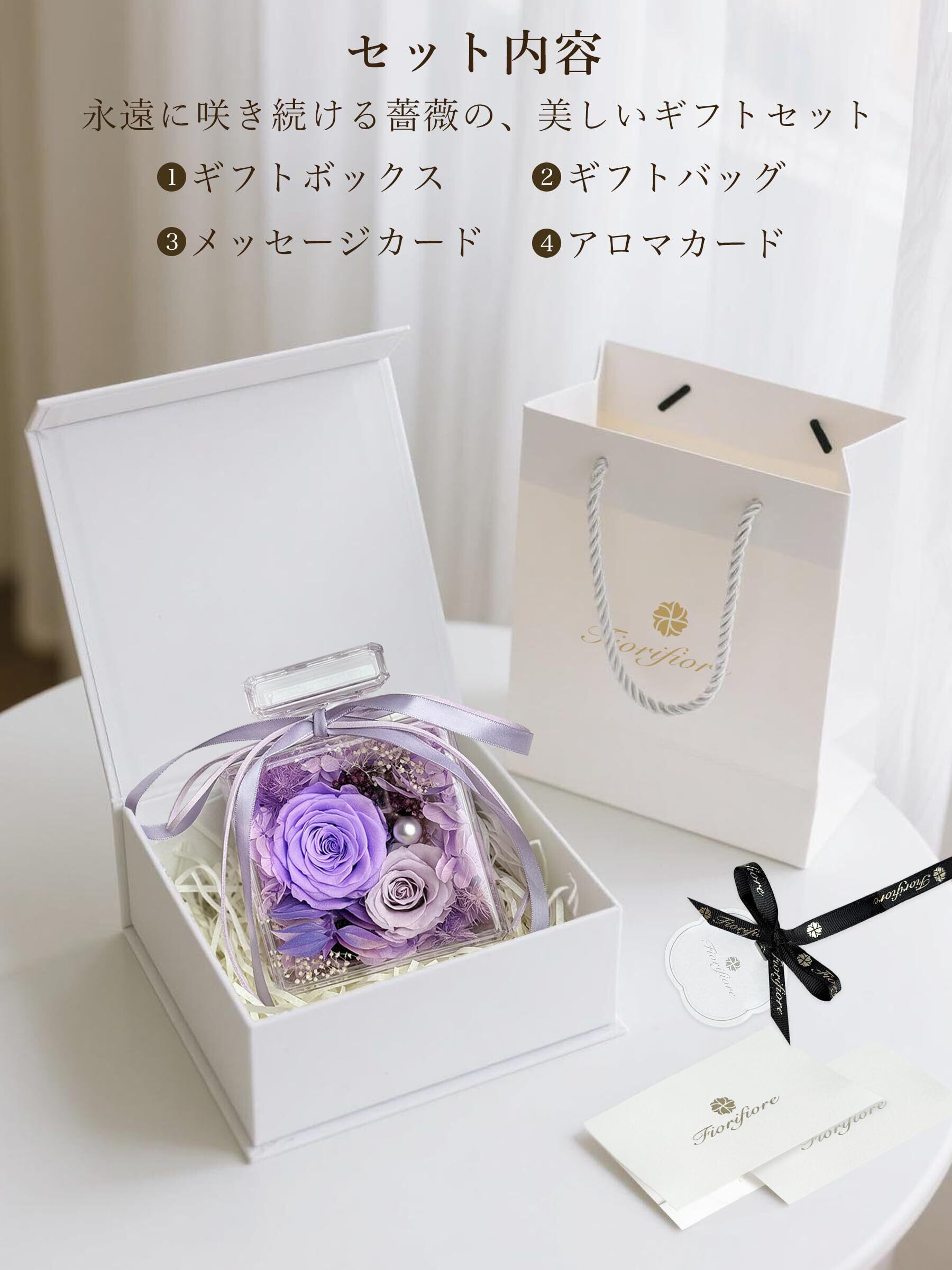 **同梱されているローズ香りカードで、やさしい花の香りを楽しむことができる贅沢なギフトです!** 記念日を特別なものにするためのアイテムとしても、心温まるプレゼントとなります。