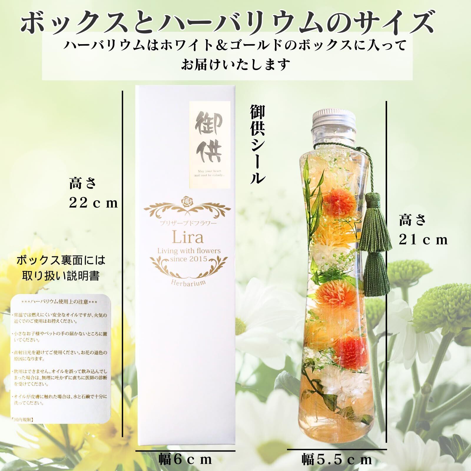 この「プリザーブドフラワーLiraハーバリウム」をぜひご検討ください!心を込めたお供えができることを心より楽しみにしております。早めのご注文をお待ちしております!✨