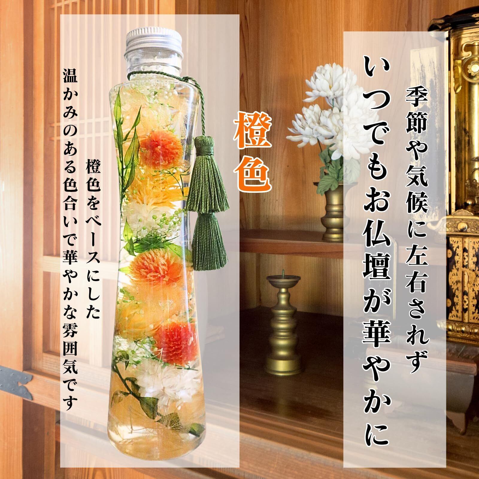 プリザーブドフラワーLira ハーバリウム お供え 仏花 お悔やみ 仏壇用 日本製 枯れない花 高さ21㎝ (橙色(オレンジ色))