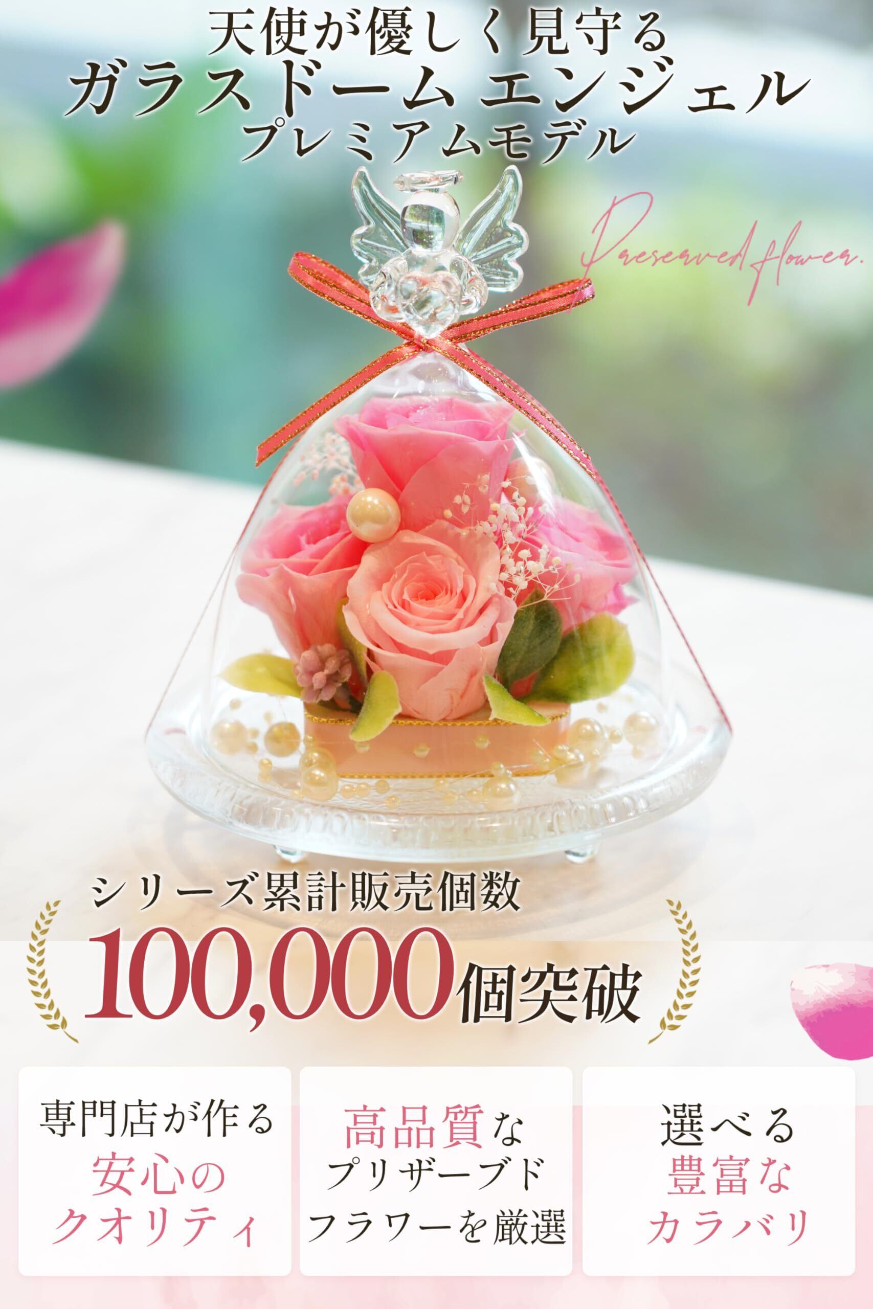IPFA プリザーブドフラワー ガラスドーム エンジェル プレミアム (ピンク & ピンク) 誕生日 結婚祝い 結婚記念日 退職祝い 還暦祝い プレゼント ギフト 人気 花 バラ お祝い 仏花 お供え フラワーギフト 記念日