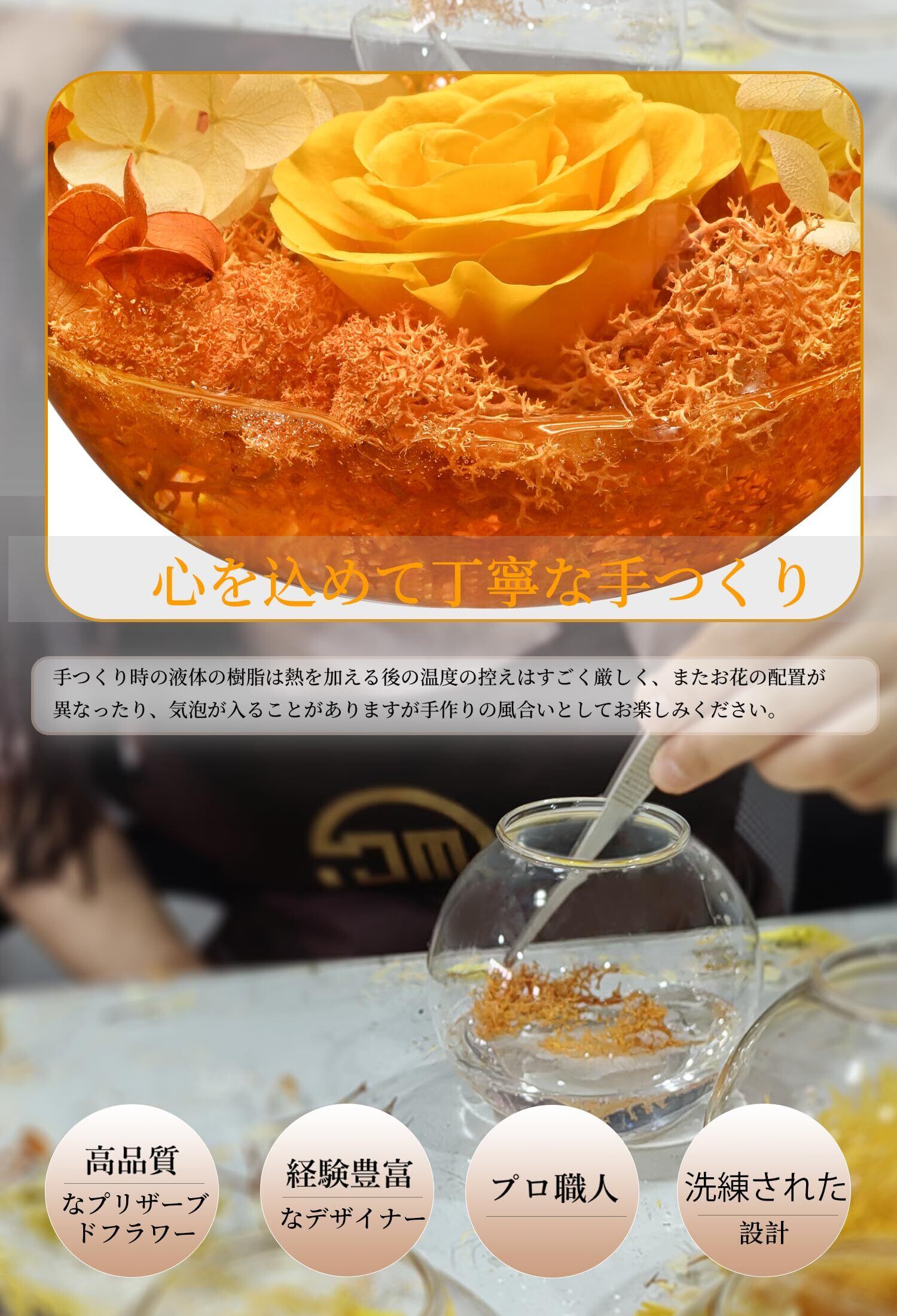 熟練の職人による手作業での製造:高品質なプリザーブドフラワー工場に長期間携わり、経験豊富なデザイナーによる設計、職人は1つ1つ真心を込めて丁寧に手作りし、ボリューム感たっぷりで上品なプリザーブドフラワーアレンジメントに仕上げました。中のプリザーブドフラワーは、生花が一番綺麗に咲いている時期に摘み取ったA級品のバラで、着色保存加工され、フレッシュなままの柔らかな風合い、美しい色合いを長く楽しむことができるように作られた枯れないバラの花です。