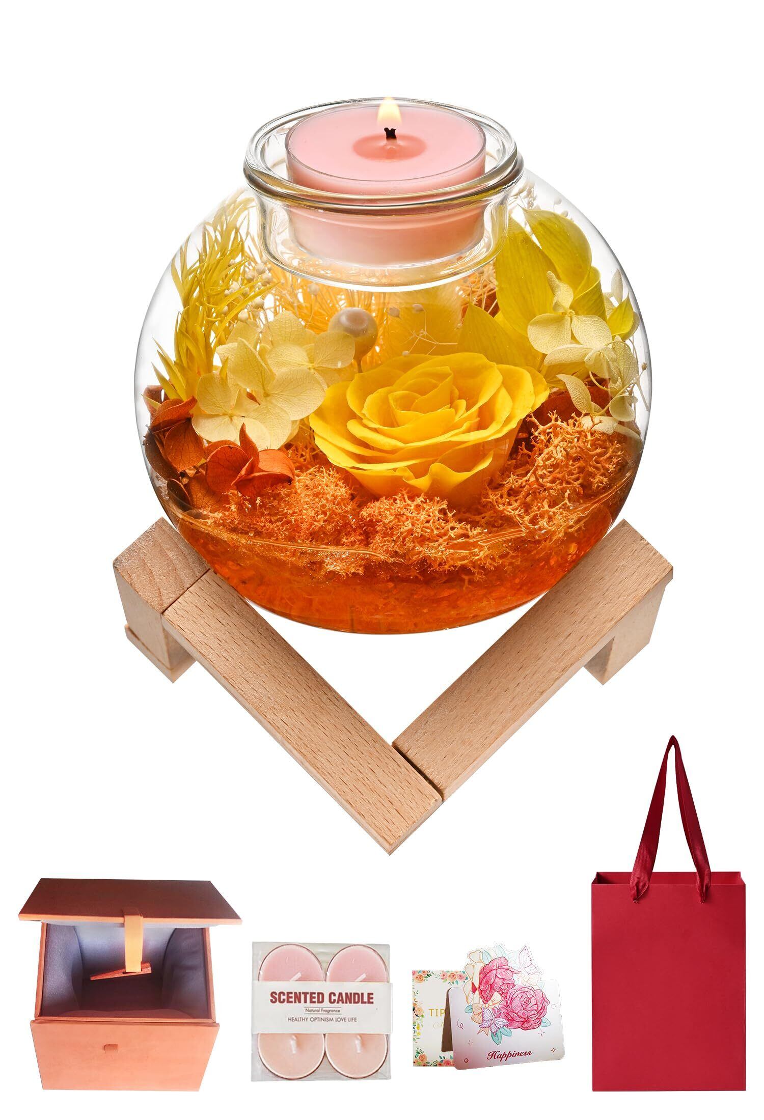 プリザーブドフラワー プレゼント 女性 誕生日プレゼント 薔薇 彼女 妻 キャンドルスタンド 枯れない花 ギフト お祝い ホワイトデー 母の日 退職祝い 敬老の日 お悔やみ キャンドルとギフトバッグ等6種付属品 オレンジ