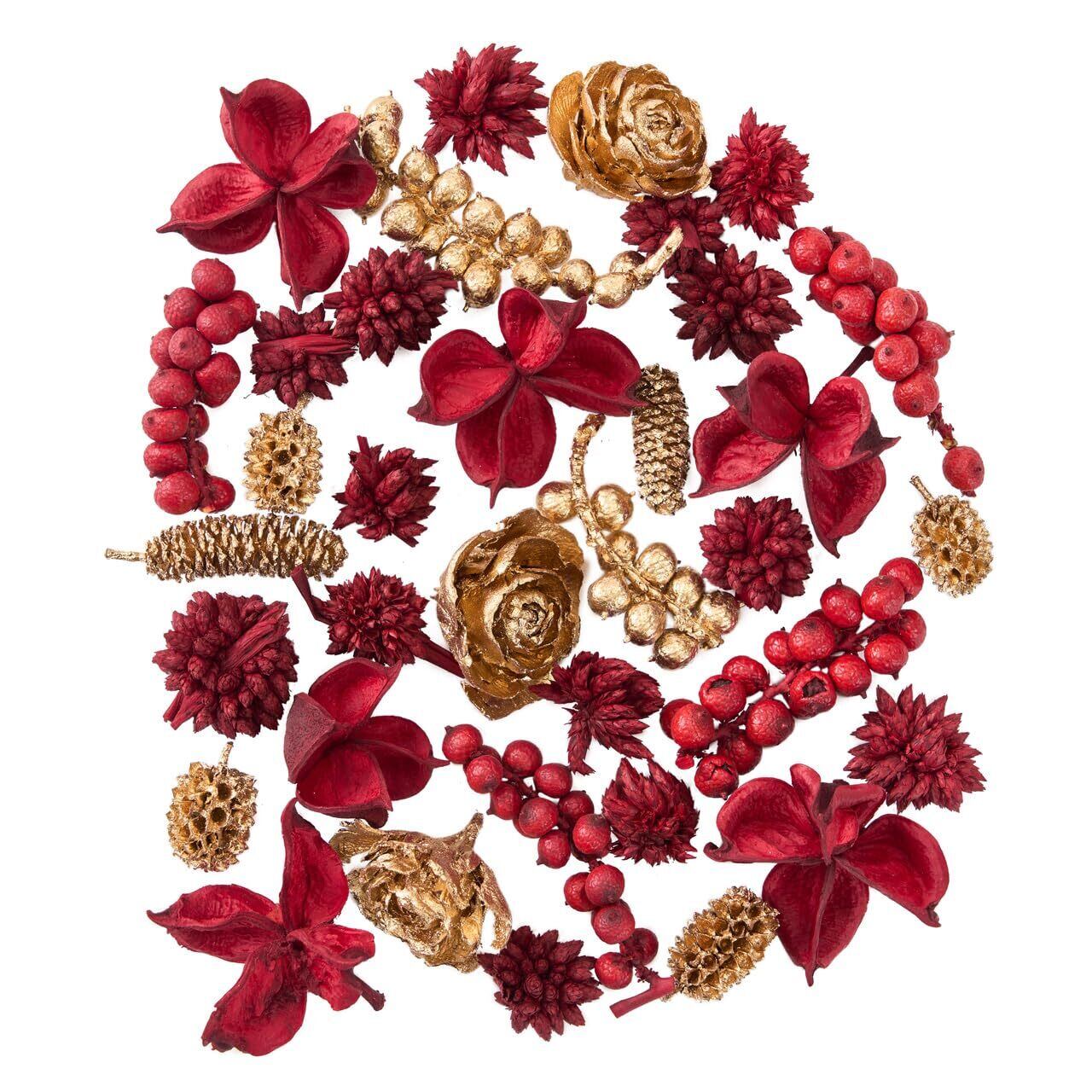 \【◆ドライフラワー レッド/ゴールド 約40~50個 ミックスコーン DO024890-340 50g入り】/