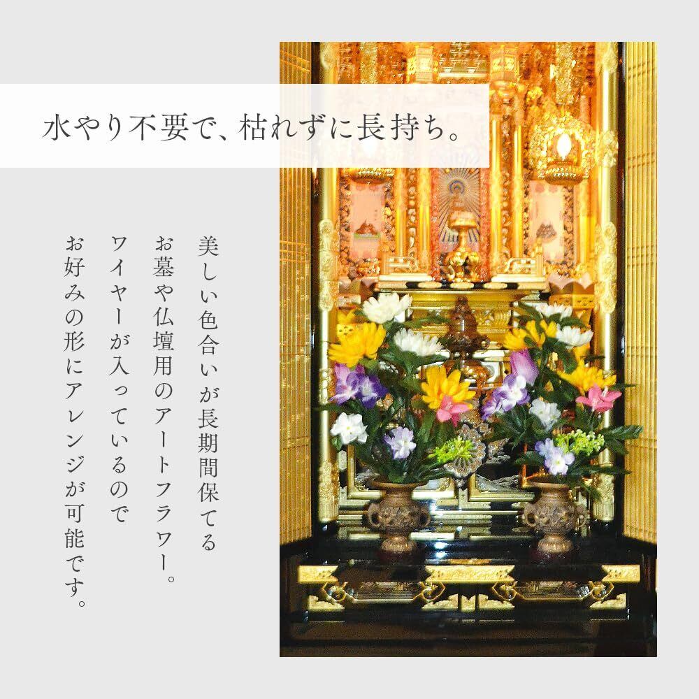 **本製品は、耐久性に優れた素材を使用しており、長期間その美しさを保つことができます!** お手入れの手間もなく、枯れる心配がないため、いつでも美しいお供えをすることができます。