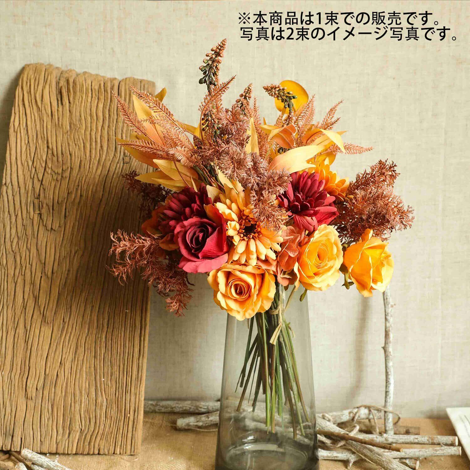 \【◆ドライフラワー 花束 造花 ブーケ 秋の飾り フェイクフラワー インテリア ウェディング 結婚式 バラ 菊 秋 DIY 撮影 美術館 ホーム 庭園 キッチン オフィス 喫 パーティー 部屋 飾り人工植物 観賞植物 オレンジ 1束】/