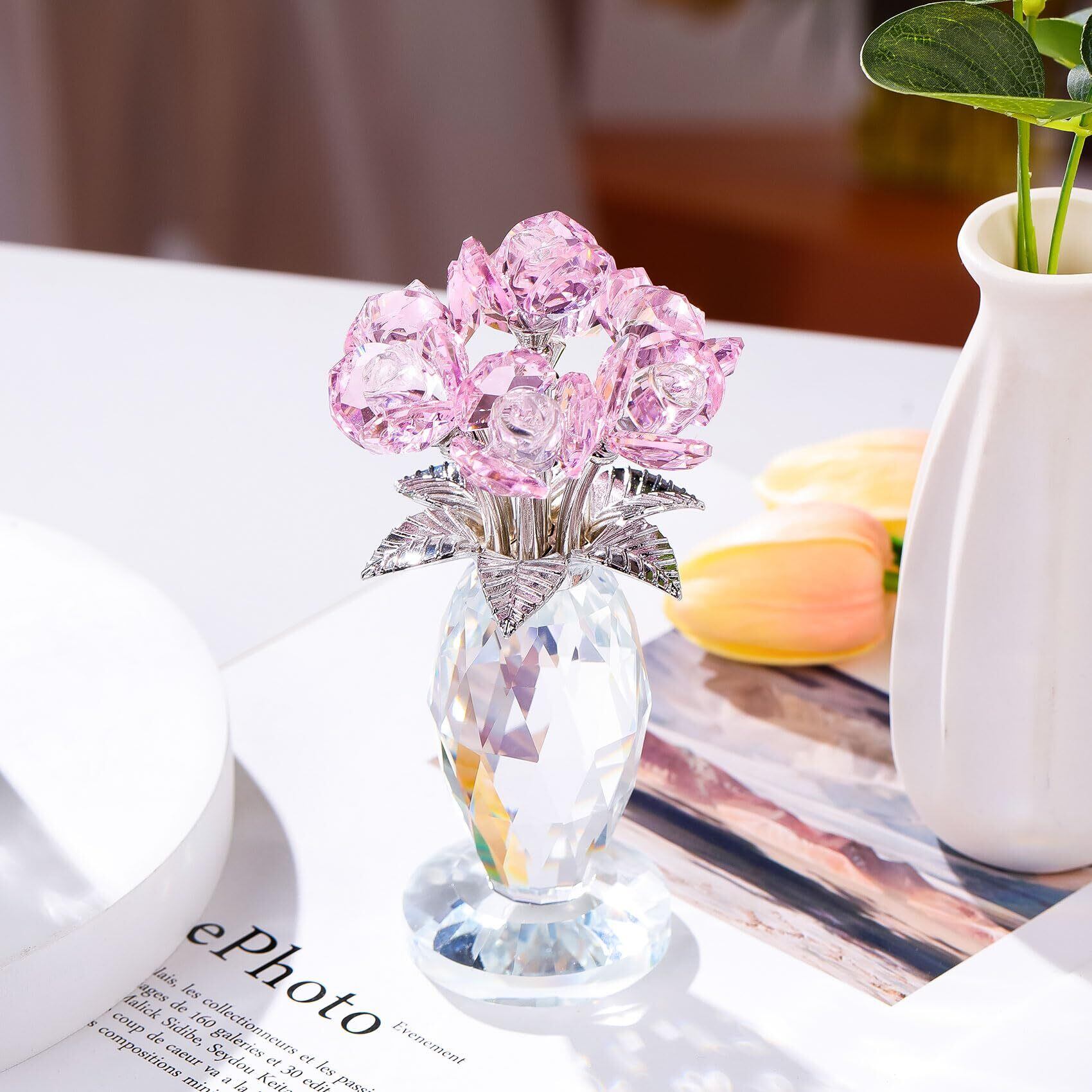 \【◆クリスタルフラワー 造花 インテリア 母の日 結婚記念日 妻 プレゼント【正規品】k9 バラ花 クリスタル 枯れない花 薔薇 ガラス細工 置物 誕生日プレゼント女性 人気 結婚祝い 送別会 卒業祝い クリスマス 退職祝い 卒寿 喜寿 ホワイトデー に適用 母親 義母 彼女への贈り物 - ピンク】/