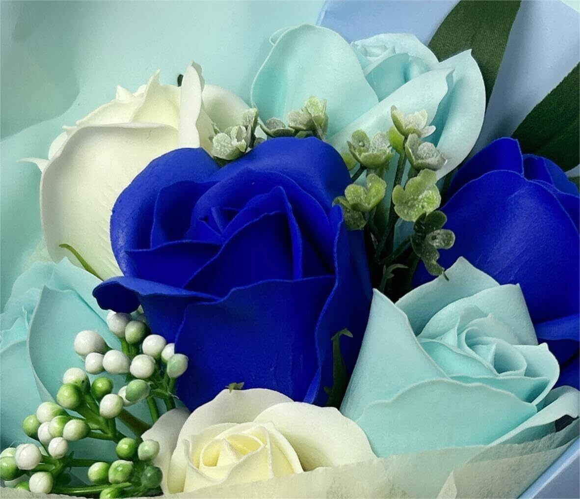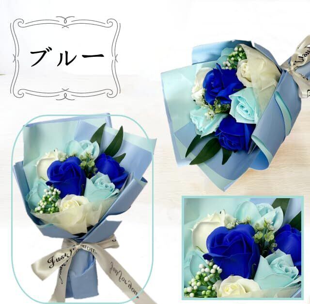 ソープフラワー 造花 花束 ソープフラワーギフト シャボンフラワ せっけん素材で作られたお花 ほのかな香りプレゼントバレンタインデー 母の日 結婚記念日 フラワーソープ 花束 誕生日クリスマス 新年 お祝いに適用 (ブルー)
