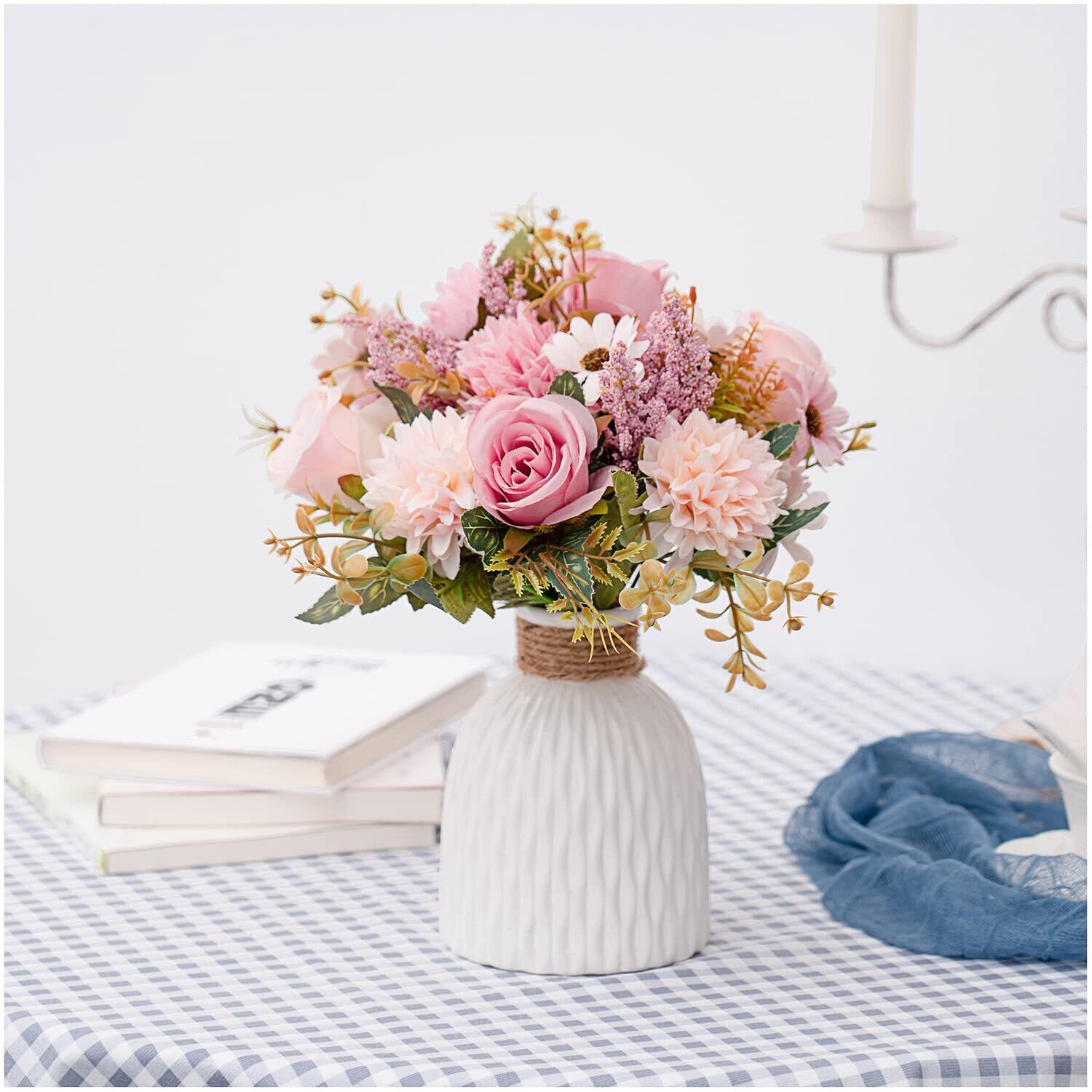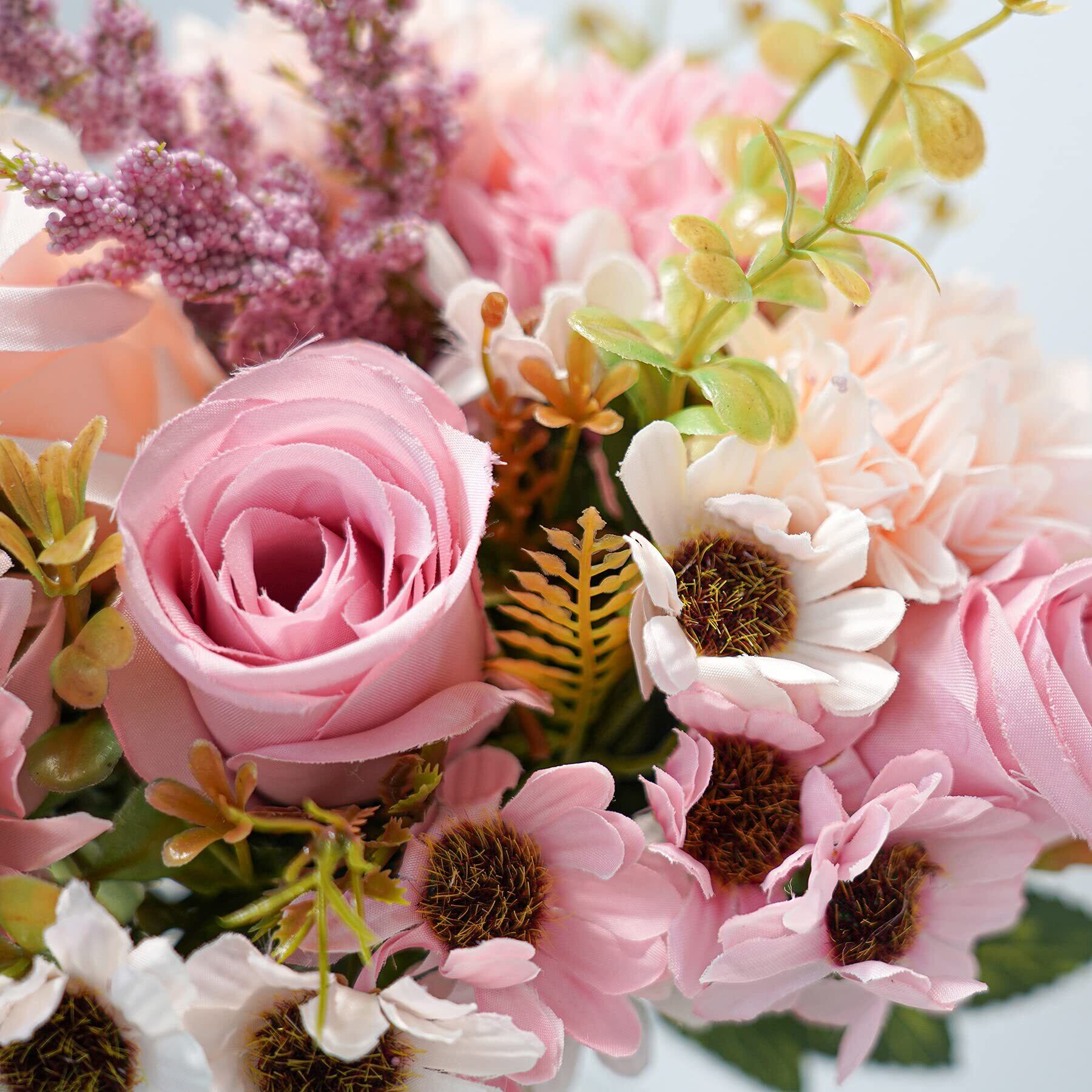 「造花は、バラと蒲公英の美しい色合いがイメージされており、**2束をセットにしているので、贈り物としても、自宅のデコレーションにも最適です!** サイズ感やデザインも考慮されており、幅広い場所でお楽しみいただけます。