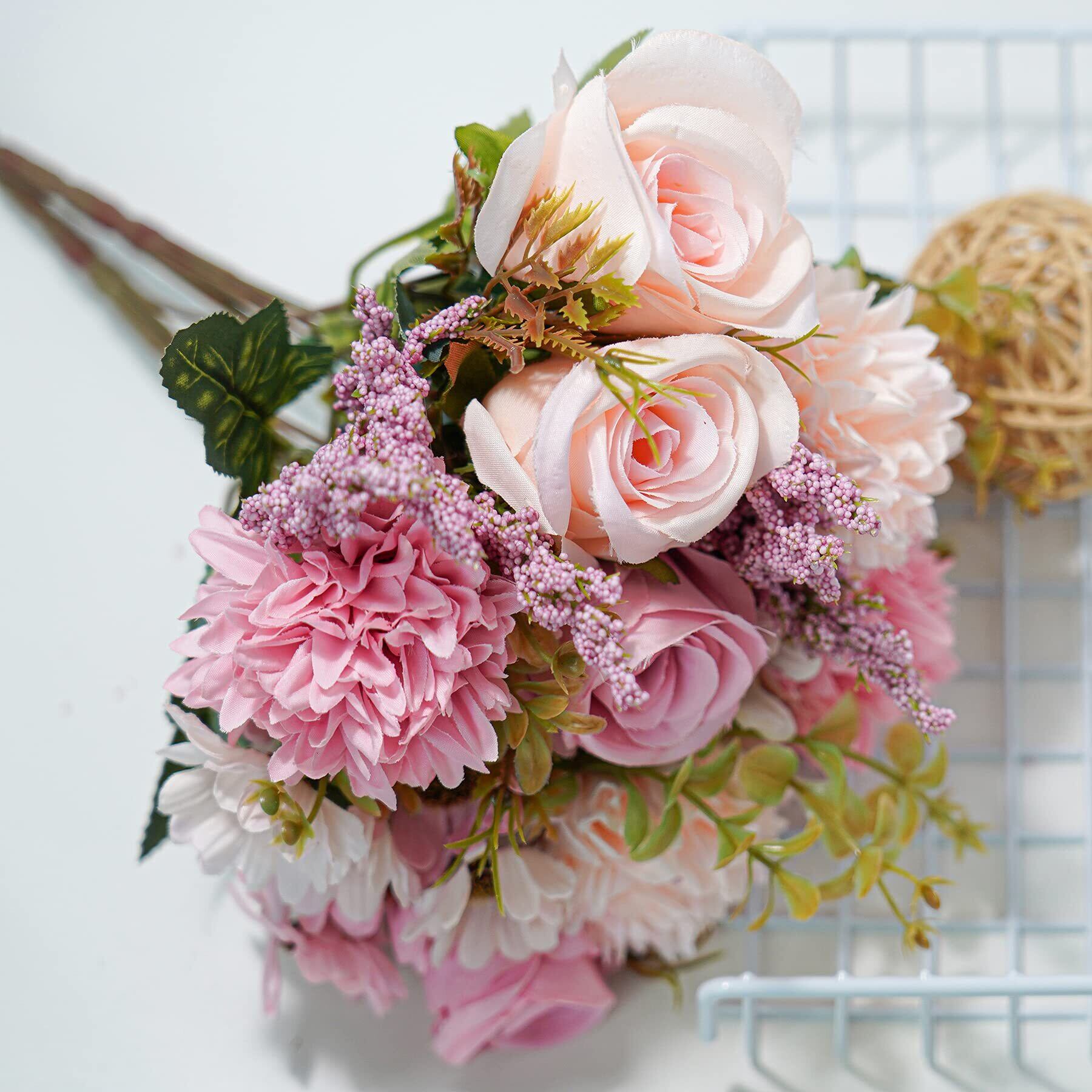 造花 枯れない花 インテリア 大切な人へ感謝の気持ちを伝えるプレゼント 花束 バラ 蒲公英 アートフラワー 家、事務所、店、喫茶店、結婚式、パーティーなど様々の応用場所 2束 ピンク