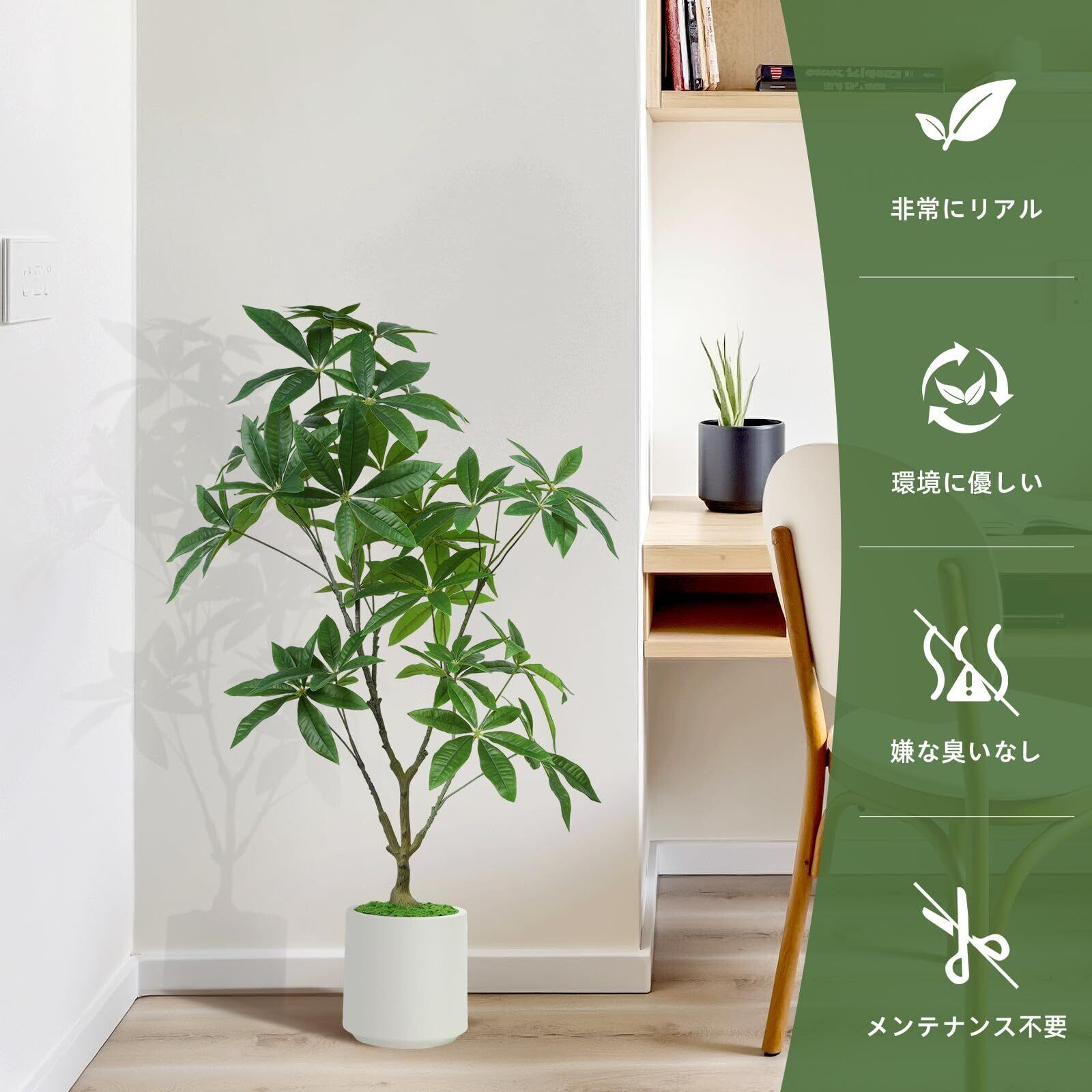 この「Alupssuc フェイクグリーン」は、**高さ100cmのパキラデザインが特徴の人工観葉植物です!** 自然の美しさを手軽に取り入れ、自宅やオフィスの景観を明るく演出します。