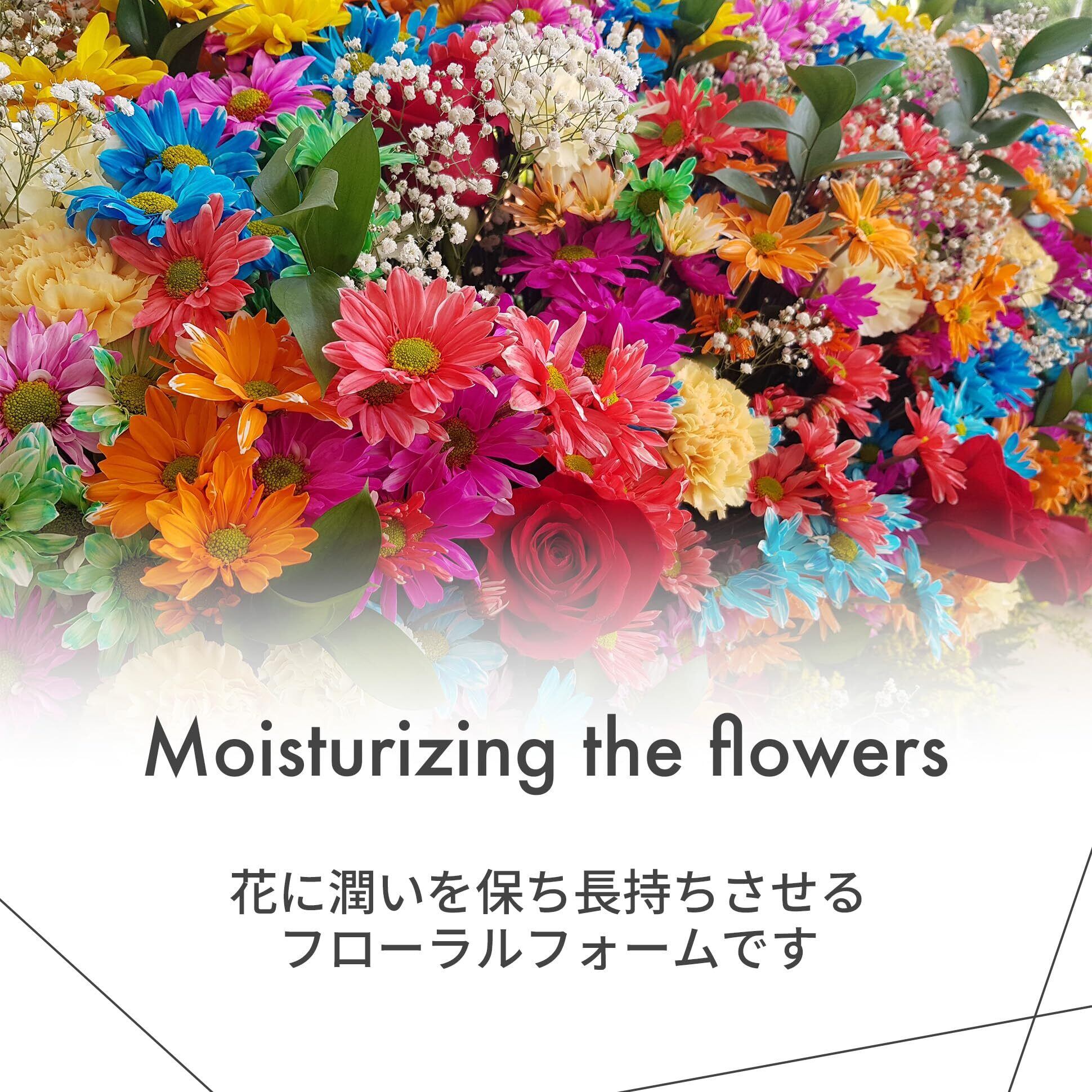【環境に優しい素材】このフォームは環境に配慮した素材で作られており、使用後も安心して処分できます。持続可能なフラワーアレンジメントをサポートし、地球に優しい選択を提供します。廃棄の際は、それそれの自治体のルールに従って処分してください。輸送中の型崩れを極力防止するためにフィルム個包装にしております。ご使用の際は、丁寧にはがしてください。