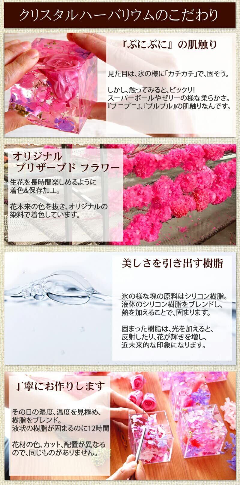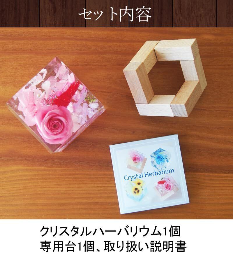 クリスタルハーバリウム ピンク×1個 花 ギフト プレゼント フラワーキューブ ローズ 薔薇 プリザーブドフラワー アートリウム 誕生日 お礼 お祝い 固める 固まる