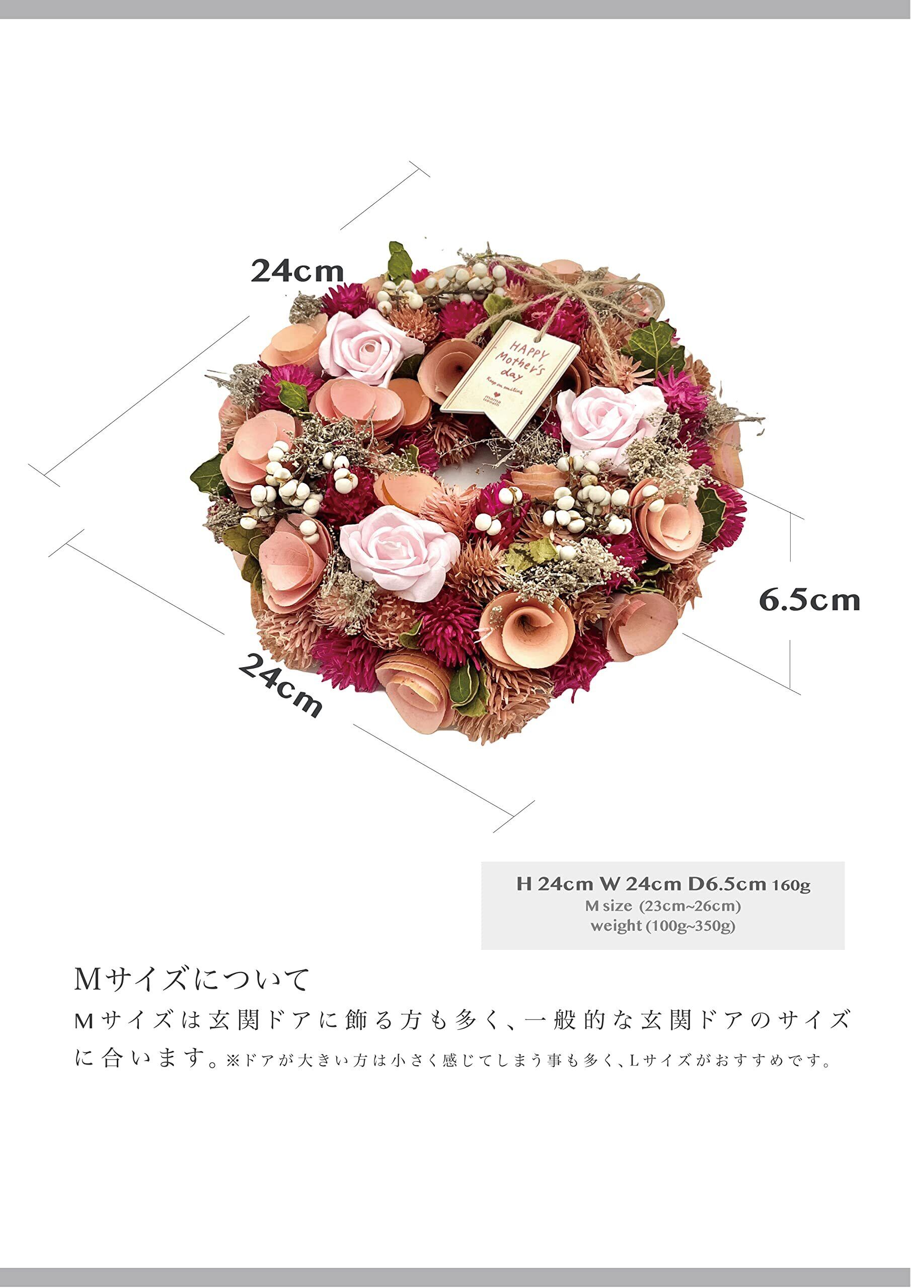 [ 2025年 mamawreath 包装済 A ] お母さん 誕生日 母の日ギフト フラワーギフト 春リース お花 プレゼント 玄関用 ピンク色 レッド色 永遠の意味 Mサイズ:24cm(直径)×7cm(厚み) (ベッピン ピンク (WR-12BKG-MP))