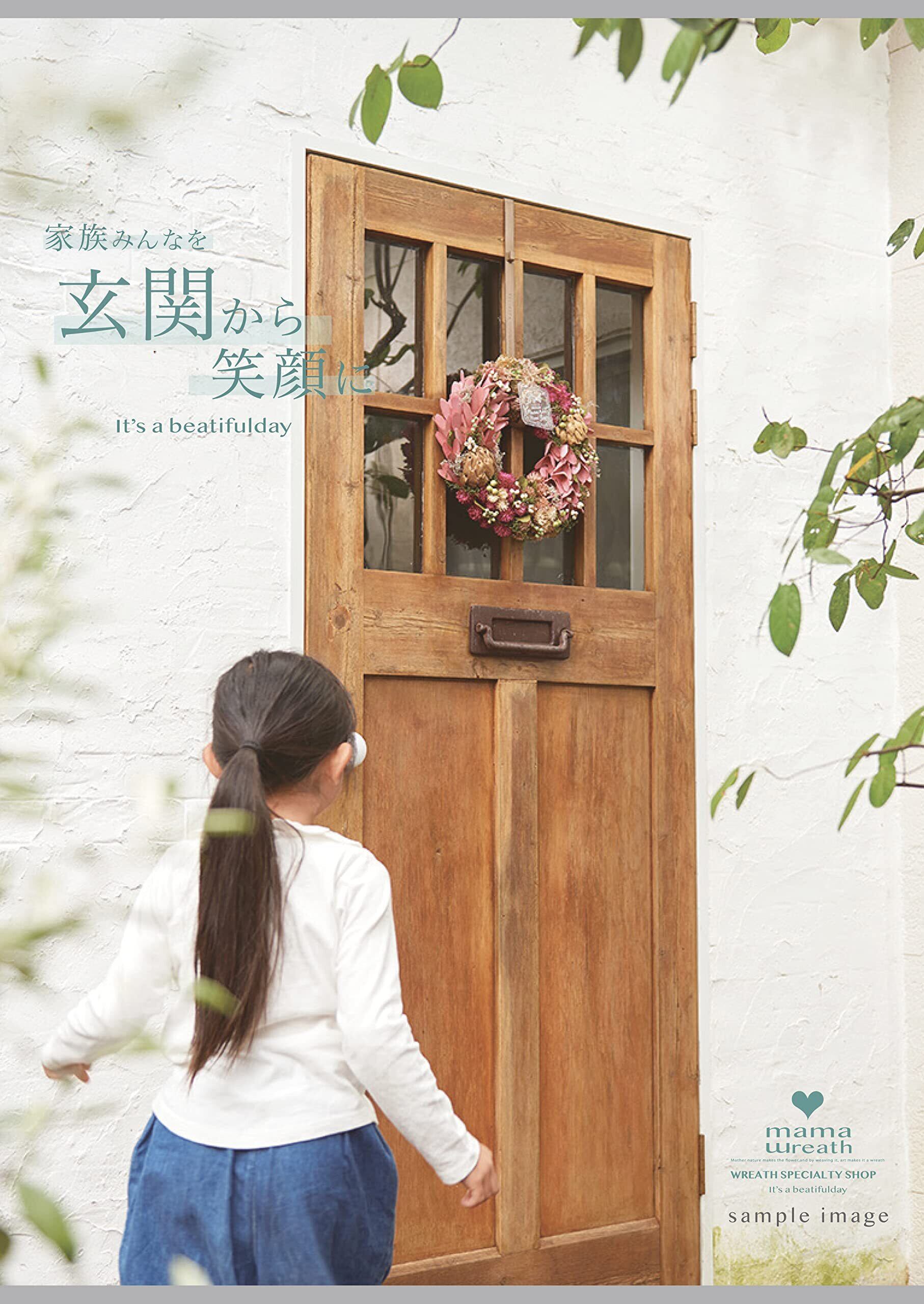 家族みんなを玄関から笑顔に - - - リースを飾る場所は玄関ドアやお部屋の壁、スタンドを使ってテーブルの上などに飾れます。飾る場所に決まりはありません。 リースの劣化や湿気等を考えるとお部屋の中に飾る事をおすすめします。 しかし、mamawreathでは玄関に飾る事をおすすめしています。玄関は家族みんなが帰ってきた時、最初に目にする場所です。リースを見て温かな気持ちになったり、より嬉しく笑顔になったり、小さいことかもしれませんが、ホットした気持ちでお家に入って欲しいと考えています。家族みんなを玄関から笑顔にしてみて下さい。