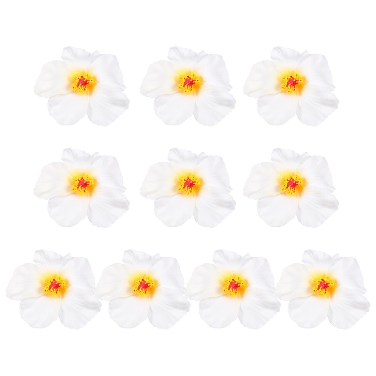 STOBAZA ハイビスカス フラワー 造花 ハイビスカスの花 10個 ハワイの造花 髪飾り ハワイアン 海辺 ホリデー パーティー 舞台衣装 オレンジ デコレーション 女性用 ヘアアクセサリー ホワイト