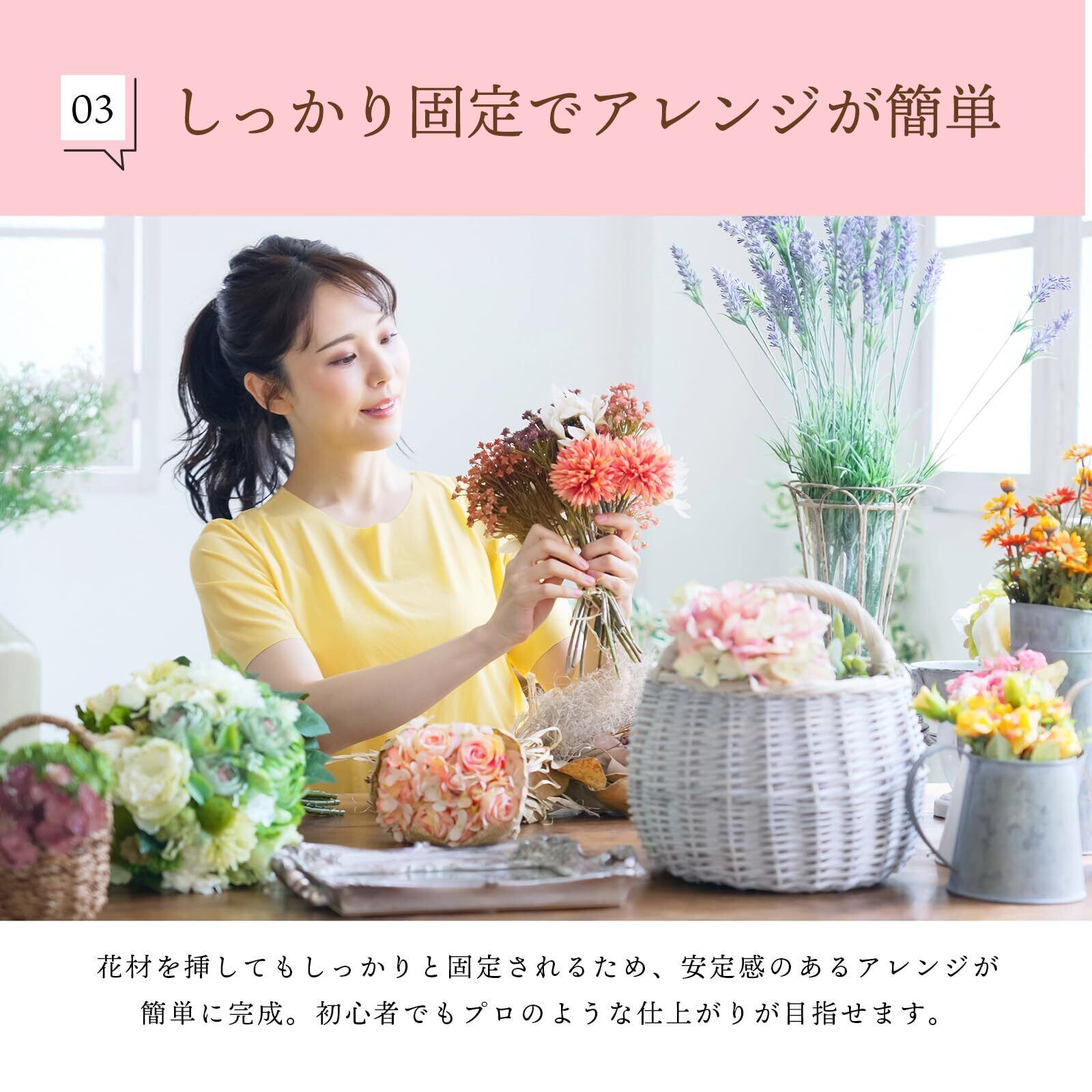 【しっかり固定でアレンジが簡単】花材を挿してもしっかりと固定されるため、安定感のあるアレンジが簡単に完成。初心者でもプロのような仕上がりが目指せます。
