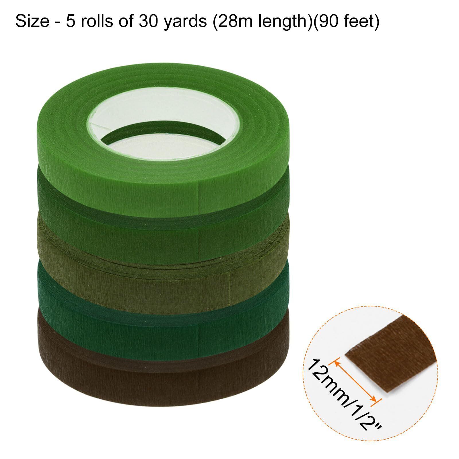 uxcell フローラルテープ 1/2" 30ヤード 5巻セット 花の接着防水テープ 花束作り 結婚式ブーケラッピング クラフト フローリストテープ