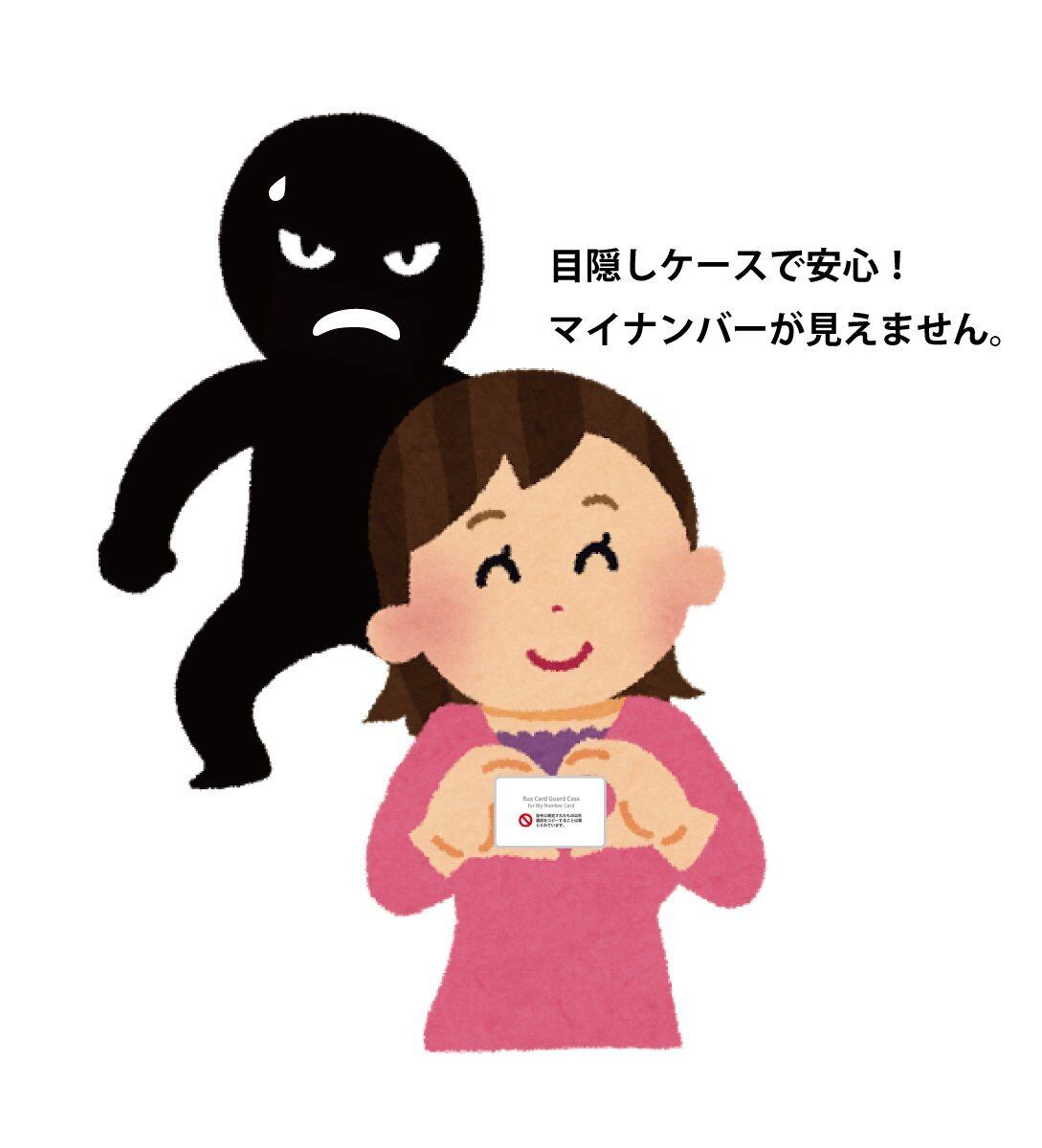 【取扱上のご注意】 ●マイナンバーカードが本製品からはみ出さないようしっかり収納 してください。 ●同梱の性別、臓器提供情報の部分を目隠しするシートをマイナンバーカードに重ねて収納することで抜け落ちの心配もありません。 ●本製品に収納したICカードはケースの表裏にかかわらず非接触の通信での読取は不可能となります。非接触ICカードとしてご利用の際は、本製品から取り出してお使いください。 ●マイナンバーカードを身分証明証として行政機関や雇用主など法令に定められた者以外に提示する際は、裏面のコピーを取られないようご注意ください。 ●本製品には磁石などの磁気の影響による磁気ストライプのデータ消失を防ぐ機能はありません。 【免責事項】 ●本製品は犯罪を完全に防止するものではありません。ご利用にあたって、万一、なんらかの被害にあわれても当社および販売店は補償の責を負いかねます。