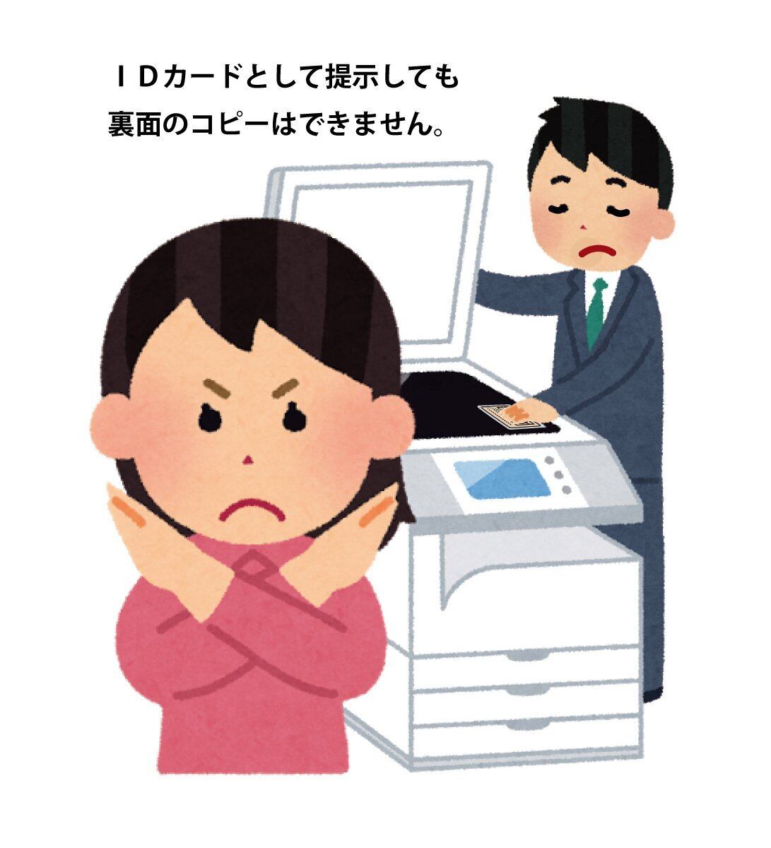 裏面に法令に定められたもの以外がコピーを取らないようメッセージが記載されています。