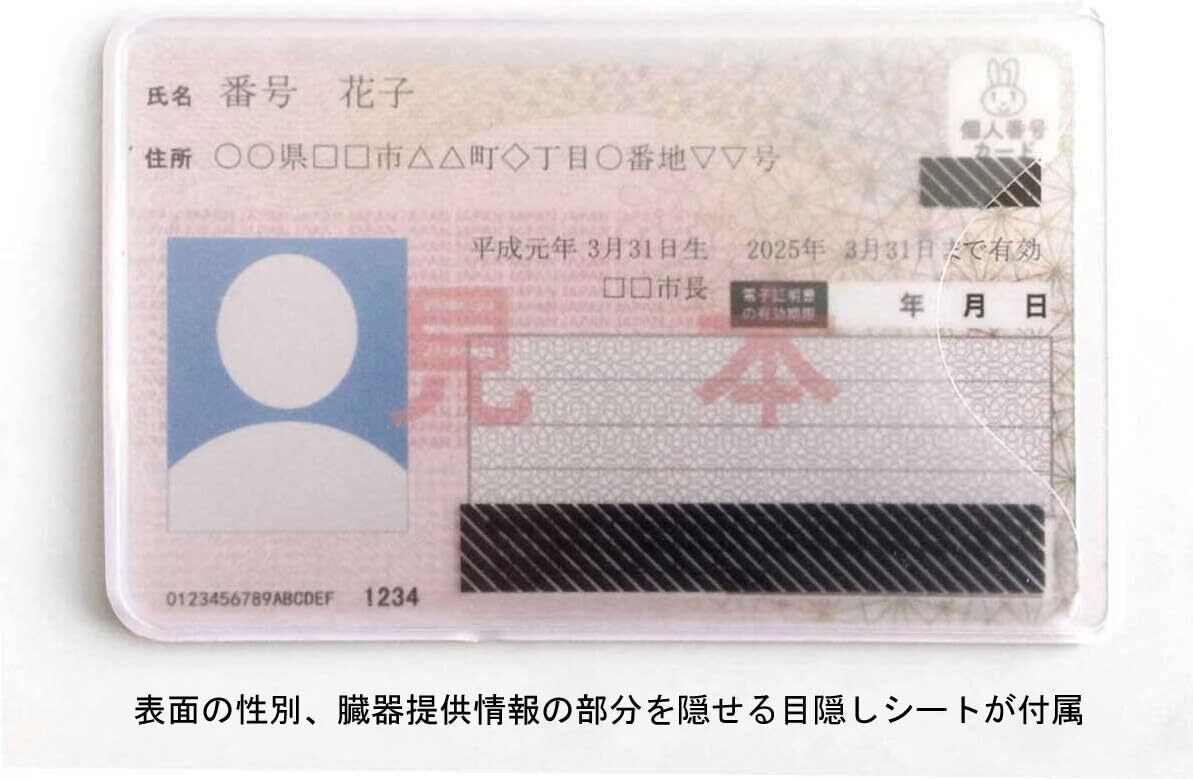硬質塩ビ製ケースでマイナンバーカードをしっかり保護します。ご要望にお応えして表面の性別、臓器提供情報の部分を隠せるシートを付属しました。マイナンバーカードと重ねて入れることで抜け落ちも防止できます。