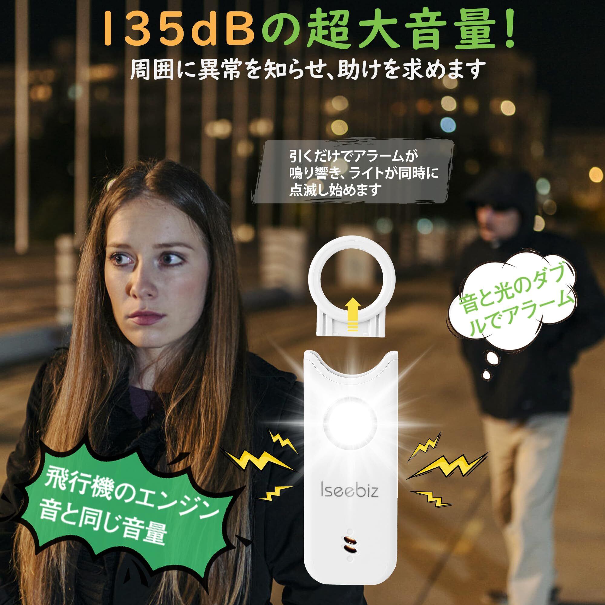 **一度鳴れば周囲にしっかり伝わる大音量135dBが、あなたの安全を守ります!** 不審者に対して即座に威嚇し、安心感を提供します。