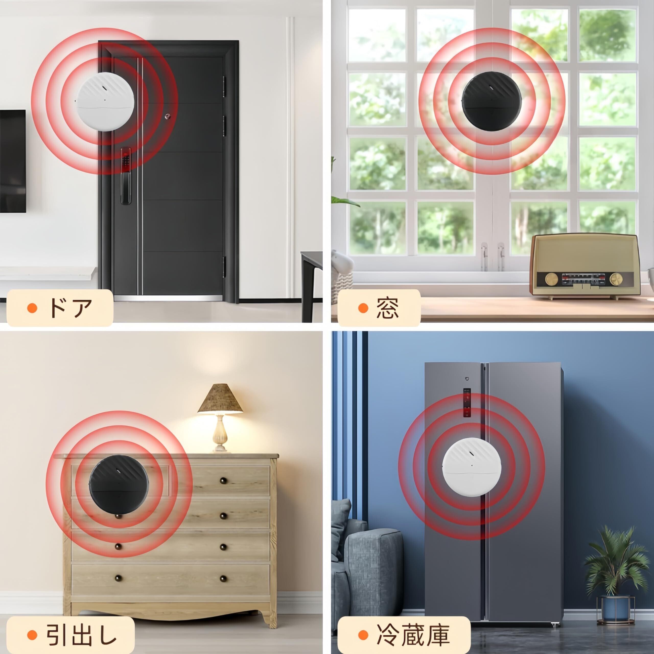 【取り付け簡単】防犯ブザー取り付けと使用が非常に簡単で、剥がして貼るだけの簡単な取り付け (両面テープ付属)。配線やネジ/ハブは必要ありません。窓やドア、ガラスなどに警報機を設置してください。