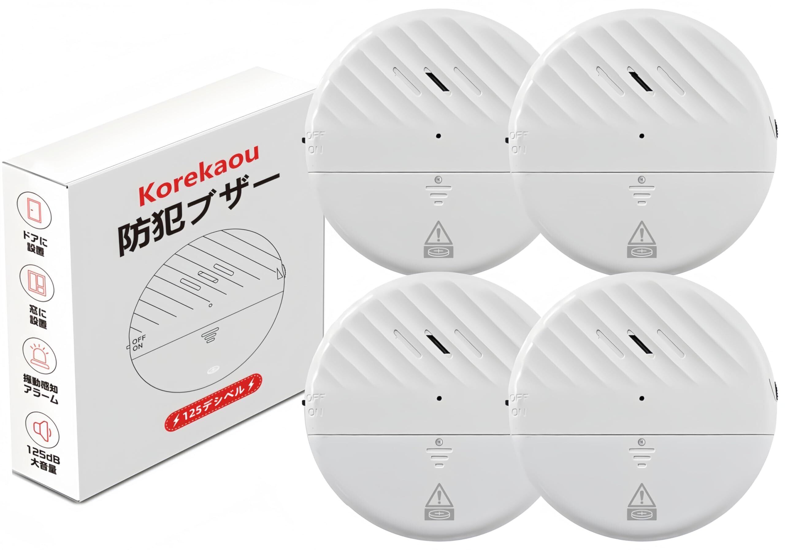 防犯ブザー 窓用 125dB大音量 防犯アラーム 超薄型 衝撃 振動センサー 警報機 バッテリー付き 強盗 侵入防止 家 玄関 防犯対策 防犯グッズ 取り付け簡単 感度調整可能 (4個, 白)