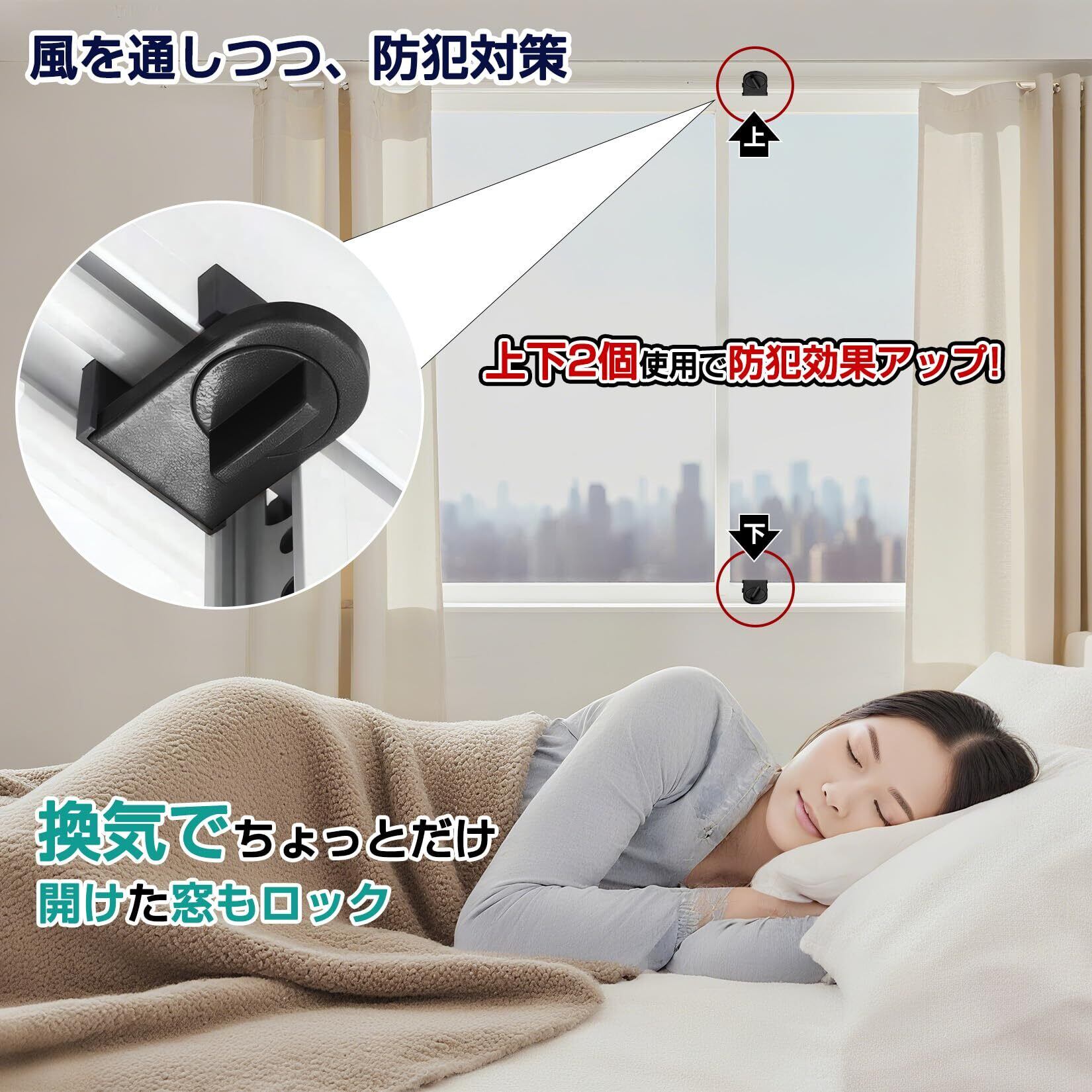 【換気しながら安心 ️】 窓を少し開けたままでも施錠可能。トイレや浴室、キッチンなどでの換気対策に最適。網戸ストッパーとしても使え、風通しを確保しながら防犯にも対応します。