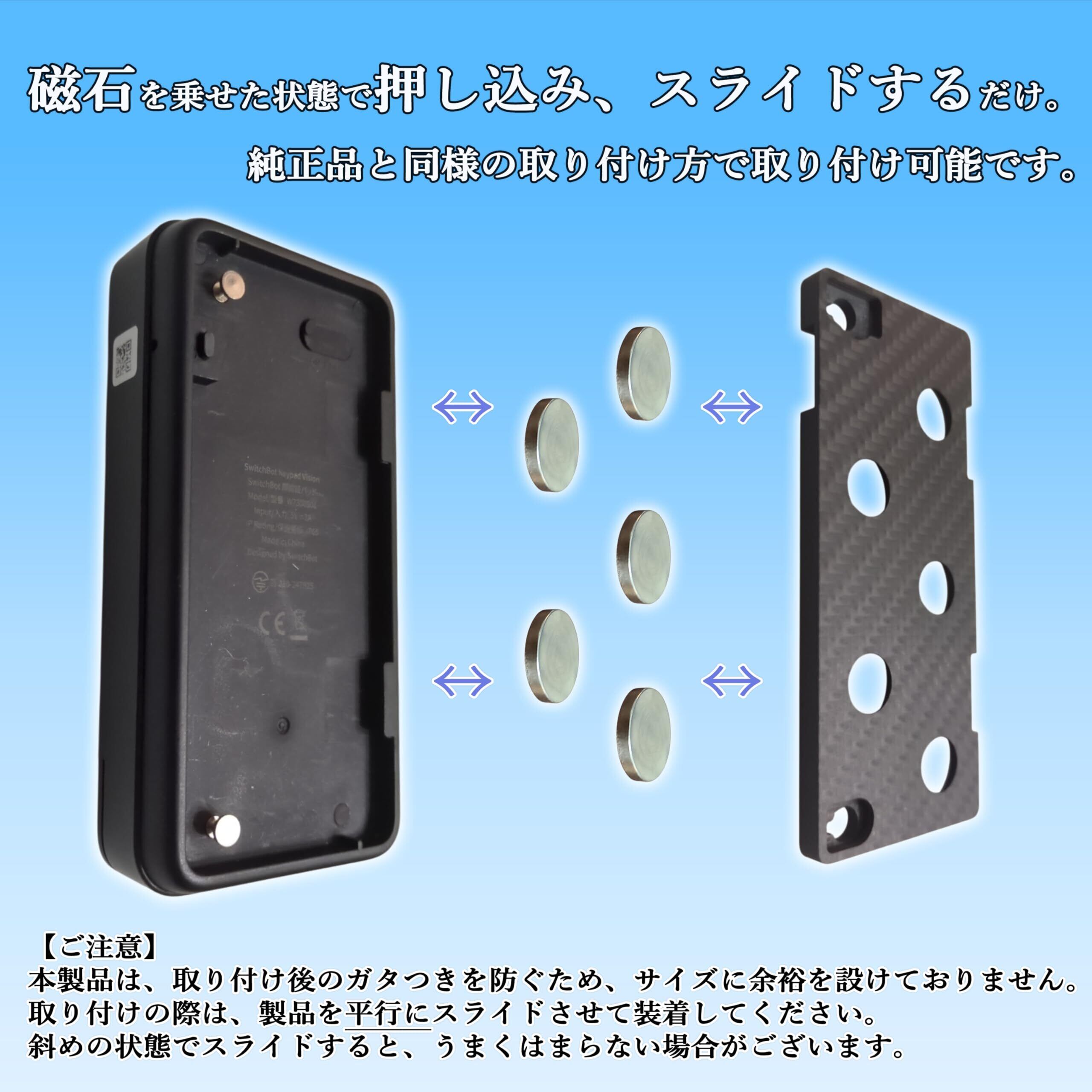 [NemRily] for SwitchBot 顔認証パッド 対応 磁石対応化キット ドアを傷つけない 汚さない 簡単取り付け 日本製 高耐久カーボン素材 (顔認証パッド, 磁石対応化キット+磁石セット)
