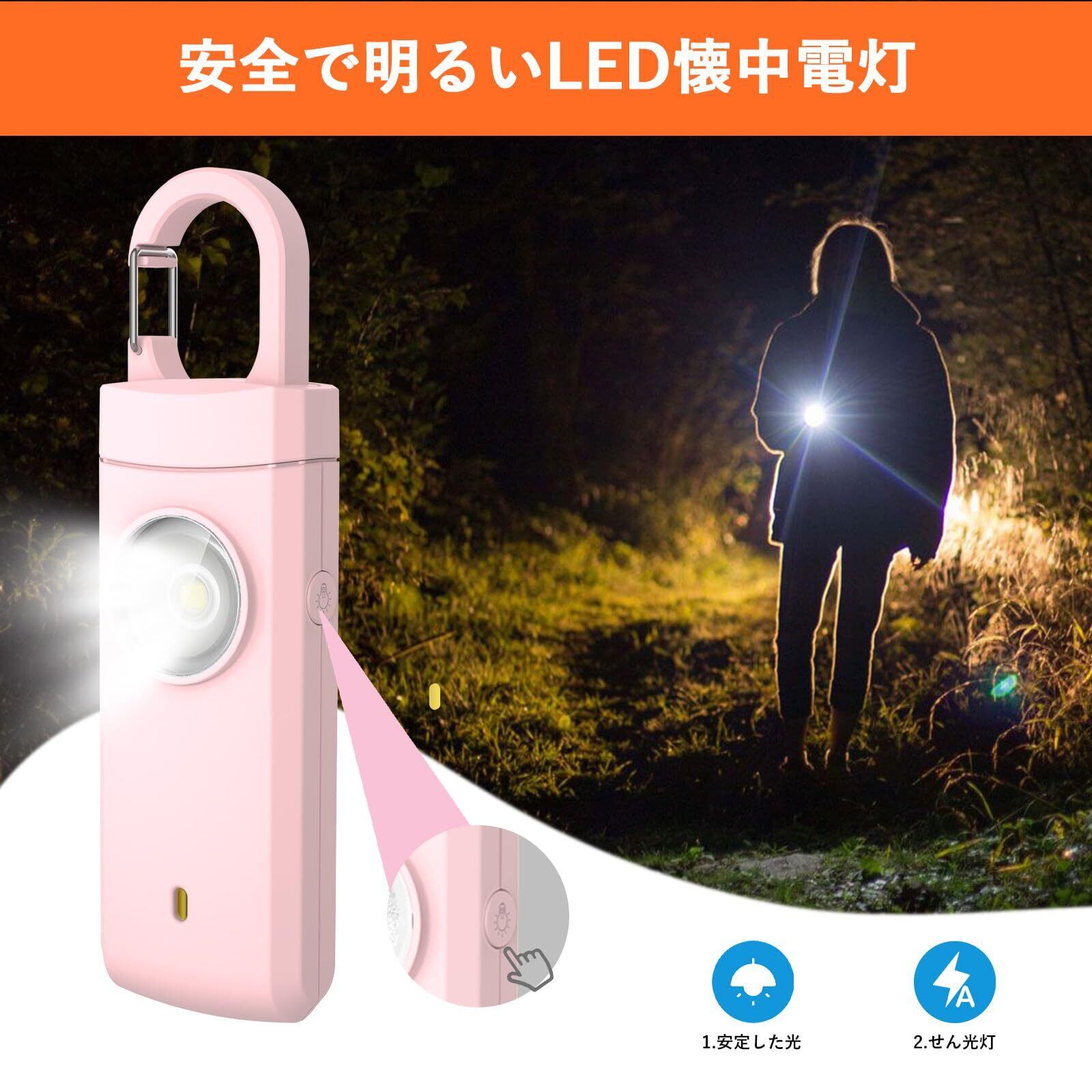 懐中電灯機能:夜外出するとき、この警報器は懐中電灯として使用でき、ボタン1つで制御できます。オンにしたりオフにしたりすることができます。緊急事態に遭遇した場合は、SOS信号として使用することもできます。