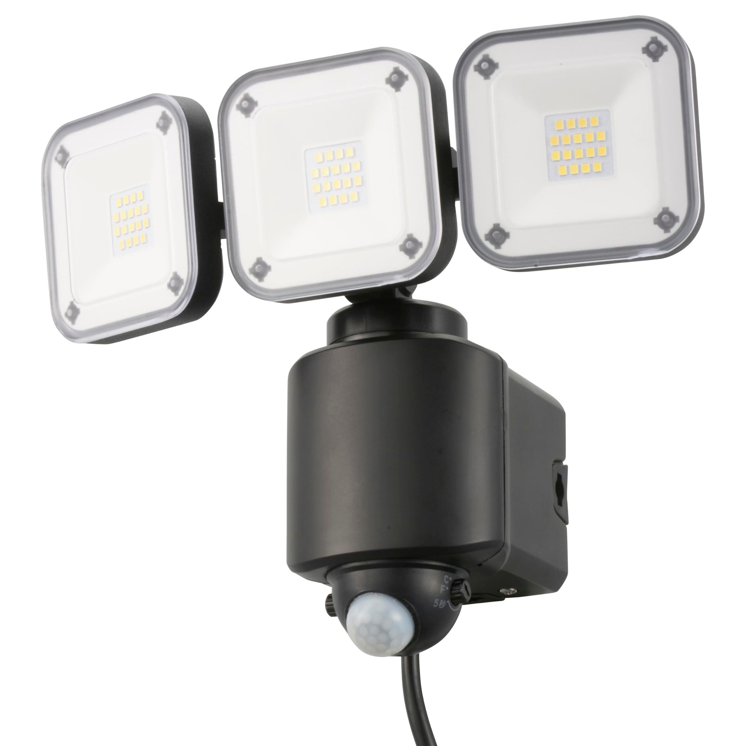 オーム電機monban センサーライト 屋外 人感センサー コンセント ledライト ac電源 4500ルーメン 3灯 IP44 防犯 自動点灯 消灯 ガーデン 庭 玄関 駐車場 LS-A450W3 07-8810 OHM
