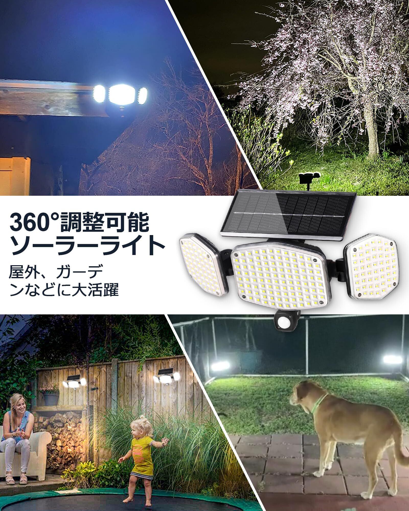 この「ソーラーライト」は、**高輝度のLEDと高感度人感センサーを搭載した、理想的な屋外用照明アイテムです!** 安全性を高め、快適な生活空間を築くお手伝いをします。
