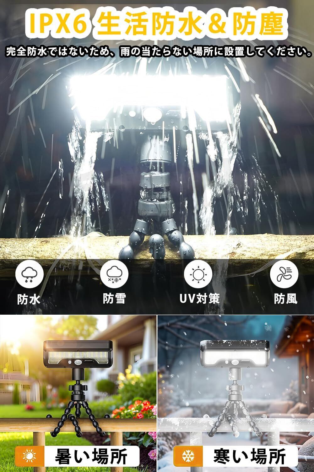 **防水性能IP65を備えているため、雨天でも安心して使用可能!** 地震や台風、停電時にも役立つ防災アイテムとしても最適です。