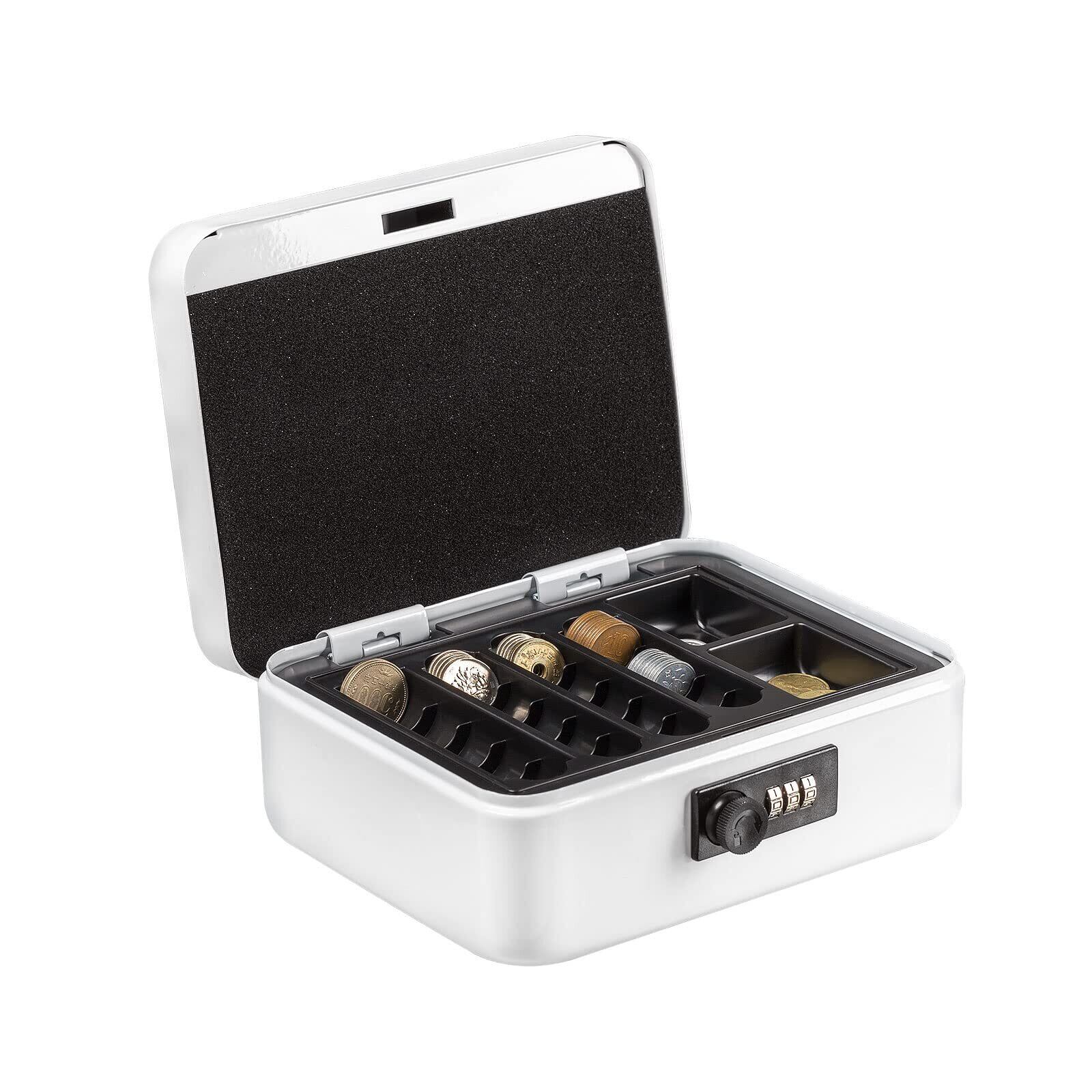 八番屋 手提げ金庫 キャッシュメイト ダイヤル付 A6サイズ 会計 オフィス ミニ金庫 貯金箱 スチール製 家庭用 約W20×D15.8×H8.5cm M200JP ホワイト