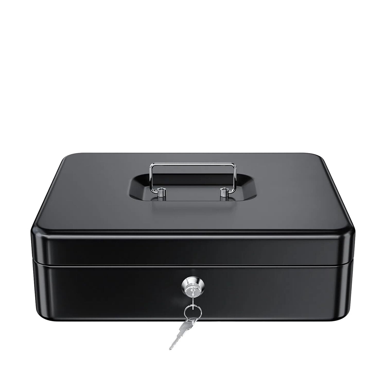 Beemyi手提げ金庫 家庭用 小型 キャッシュボックス キャッシュメイトA5サイズ 会計 オフィス ミニ金庫 貯金箱 スチール製 家庭用 セキュリティボックス(Black, W25×D20×H8.8cm)