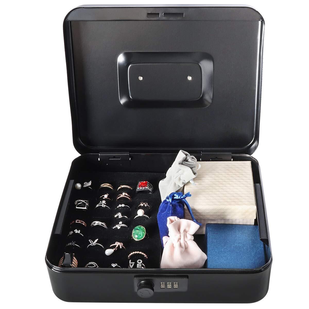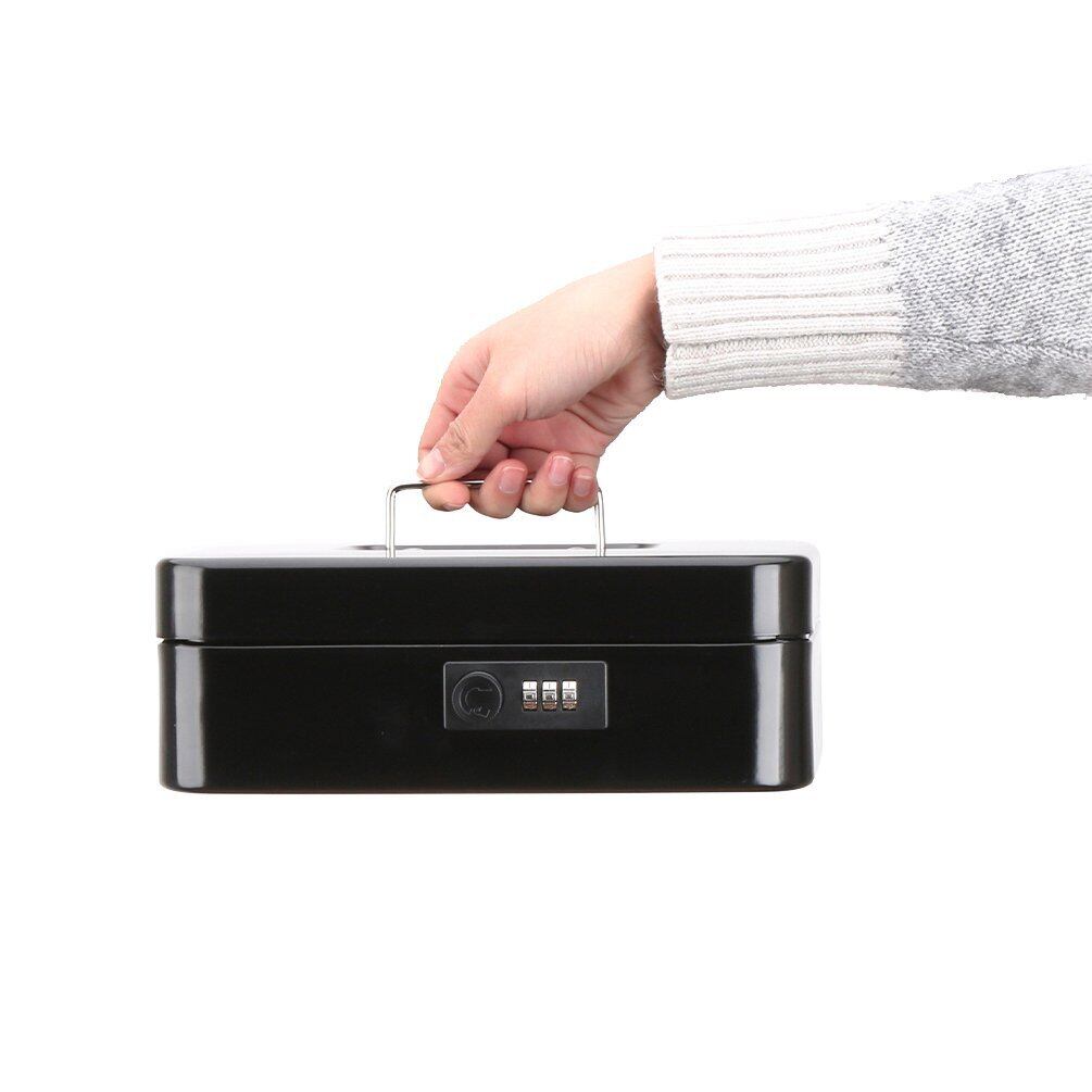 Jssmst(ジェスマット)手提金庫 ダイヤル式 金属製 25x20x9cm A5サイズ CB0701L (黒)