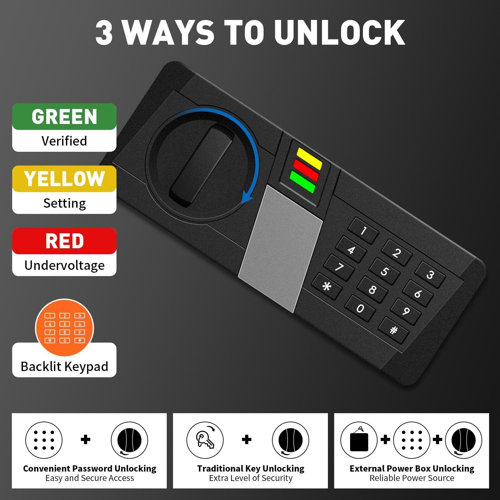 安全【インテリジェントな照明&外部電源の利便性】: AltiKeepセーフはインテリジェントな照明と操作インジケーターを備えており、暗闇でもアイテムが見えるように開くと点灯します。 バッテリー操作と外部ボックス充電ポートがあり、停止時に中断なくアクセスできるデュアル電源オプションがあります。
