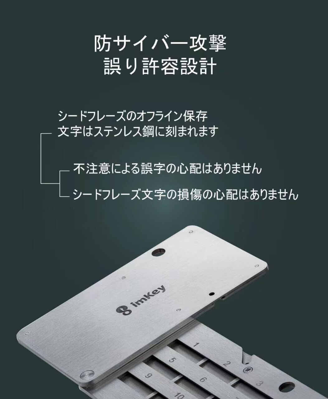 \【◆imKey S1|耐火・防水 加密資産 暗号通貨 仮想通貨 シードフレーズ 金属保存 バックアップ メタル 鋼板 グッズ|BIP39対応 12/18/24語 Seed phrase storage|コールドウォレット・ハードウォレット対応|Bitcoin・Ethereum・ETH・Solana メタルバックアップ crypto wallet hardware wallet】資産を守るための強力なシードフレーズ管理!/