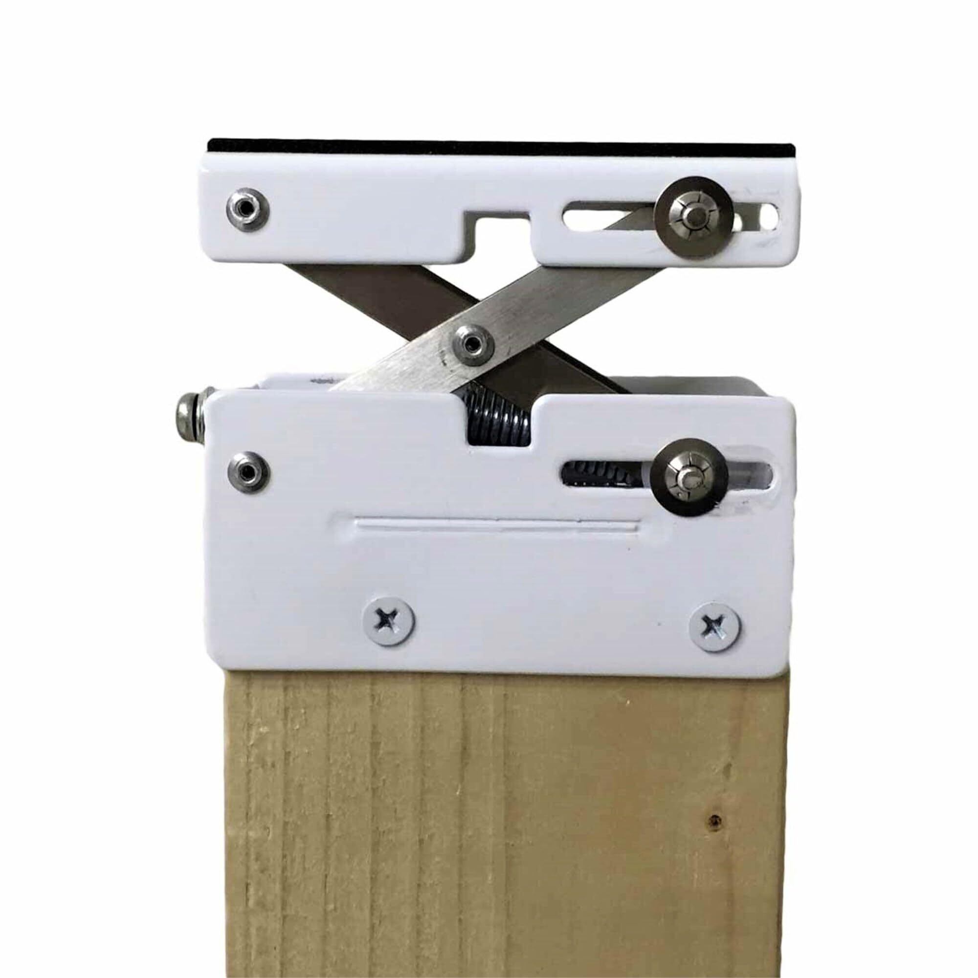 ジャッキ+バネの力で、市販のツーバイ材をしっかり固定でき、オリジナルの棚が簡単に作れる