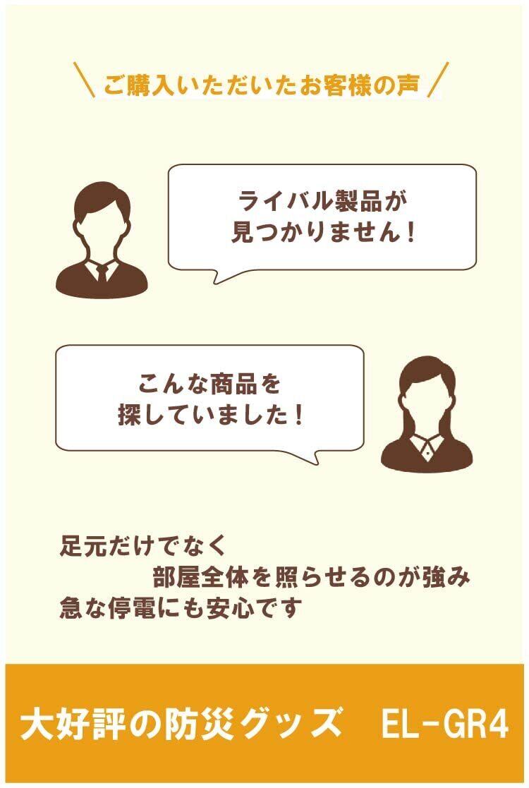 この「LED非常照明灯EL-GR4」は、**防災対策を強化するために設計された信頼のアイテムです!** 自宅やオフィスの防災対策としてぜひご活用ください。