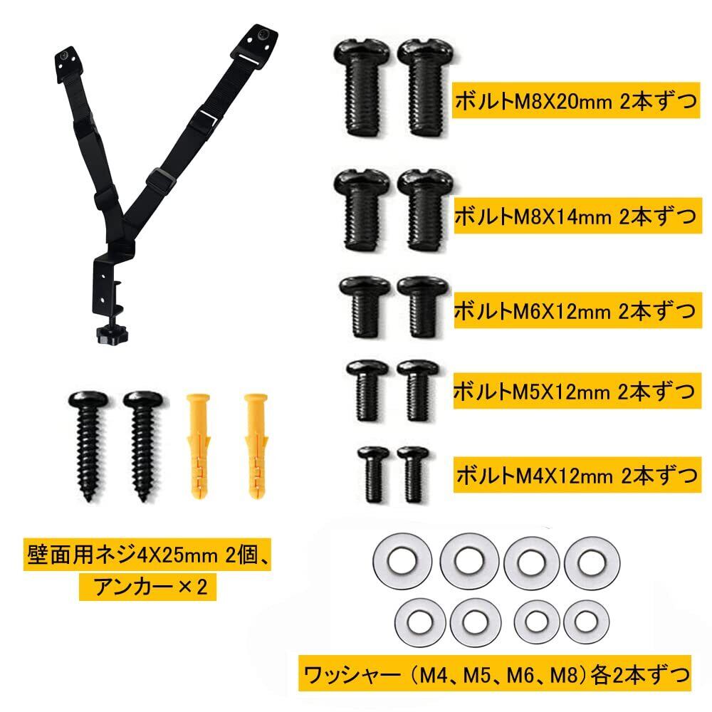この「テレビ 転倒防止ベルト」は、**穴あけ不要で手軽に取り付けることができます!** シンプルな設計により、VESA取り付けにも対応しており、テーブルや壁にしっかり固定することで、地震などによる揺れから大切な映像体験を守ります。