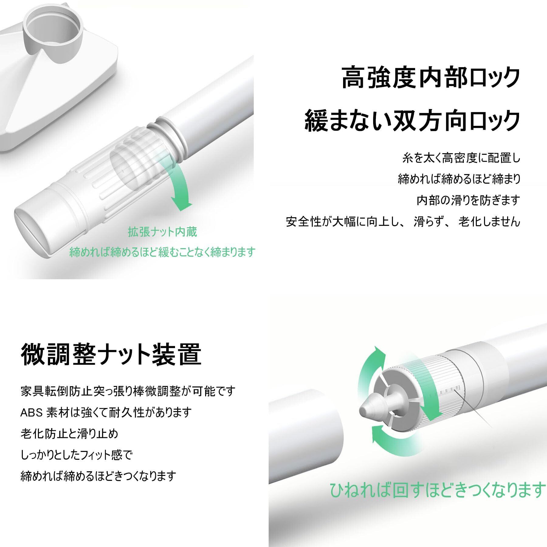 【取り付け簡単】: つっぱり式で取り付けカンタンな耐震ポール。耐久性に優れています。EVA保護パッドが付いてお適用高さ53-280cm、滑ることはありません。次に、ネジを緩めたり増やしたりして長さを調整し、しっかりと固定します。女性でも簡単に設置できる。