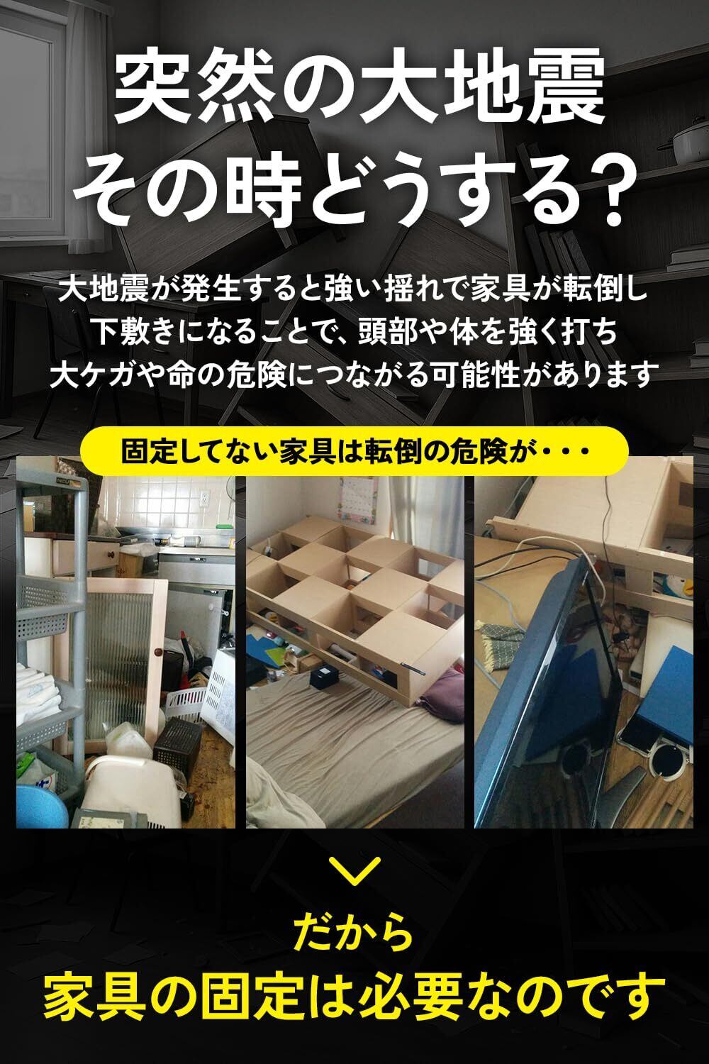 **頑丈な素材を使用しており、地震時の揺れに耐えられます!** 家具の転倒を防ぎ、ご家庭の安全を守ります。