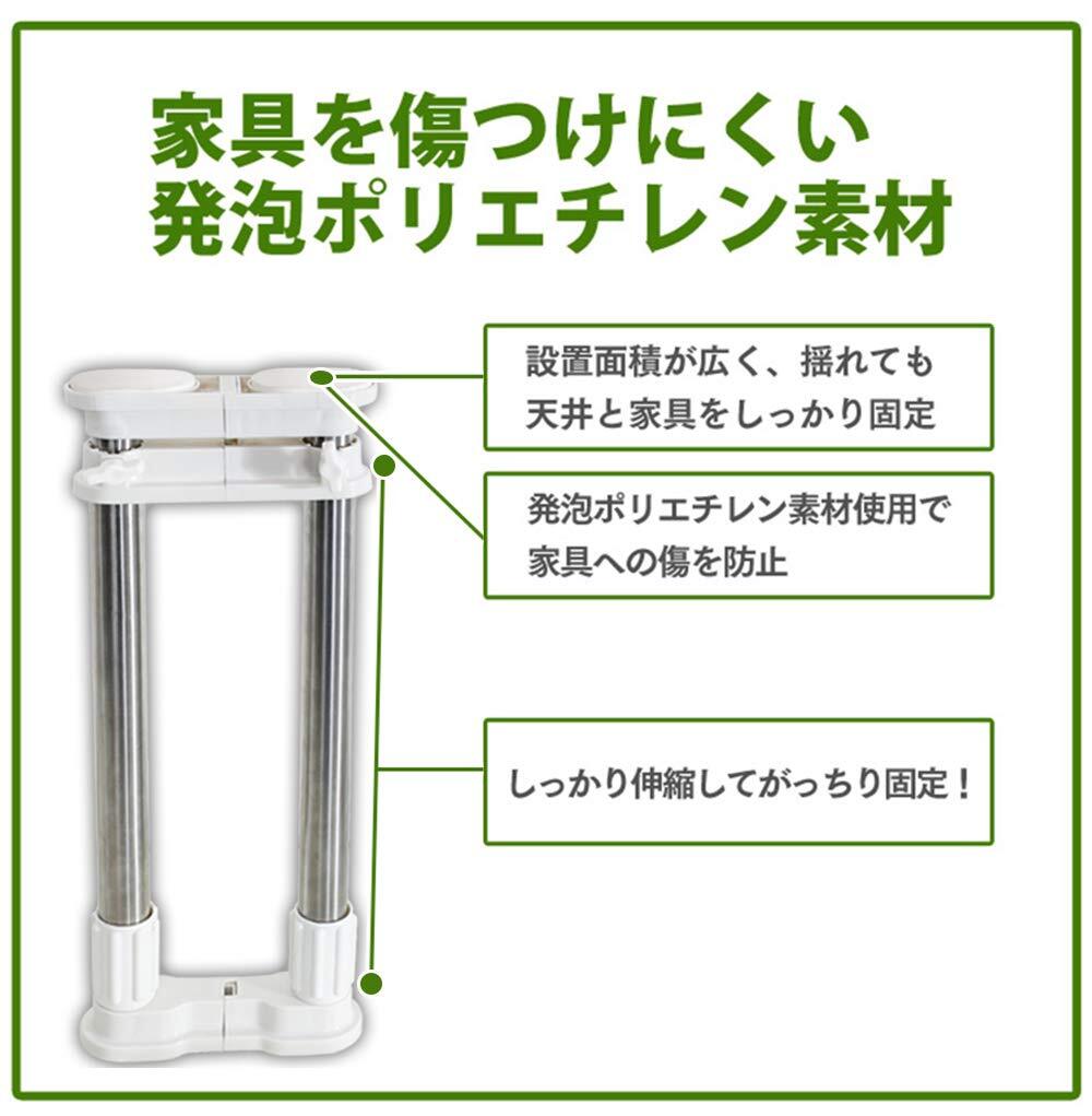 本製品は、取り付けたい高さに調整後、天井と家具の間にしっかりと挿入し、固定します。設置後は定期的に状態を確認し、安全にご使用いただくことが大切です。